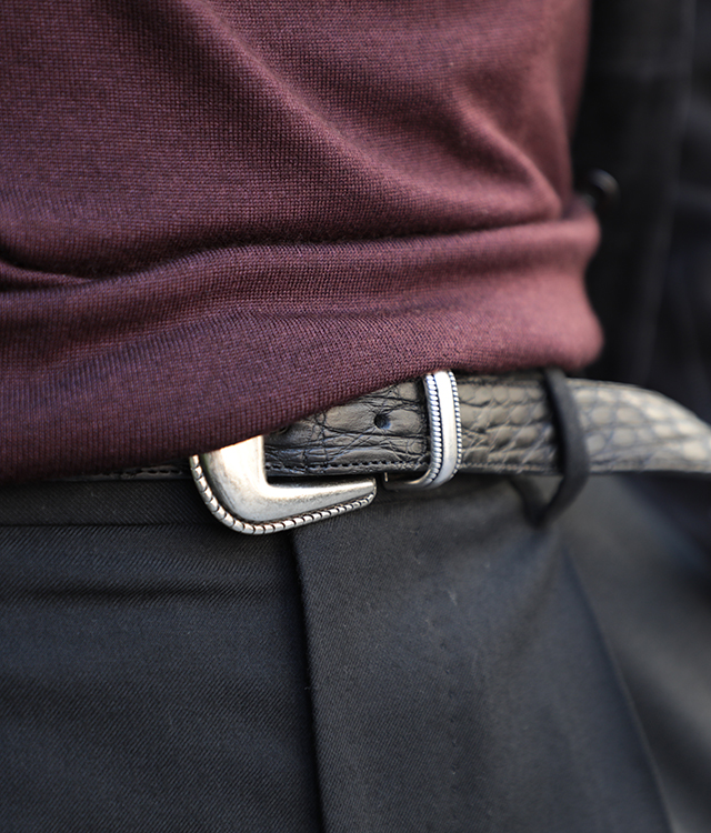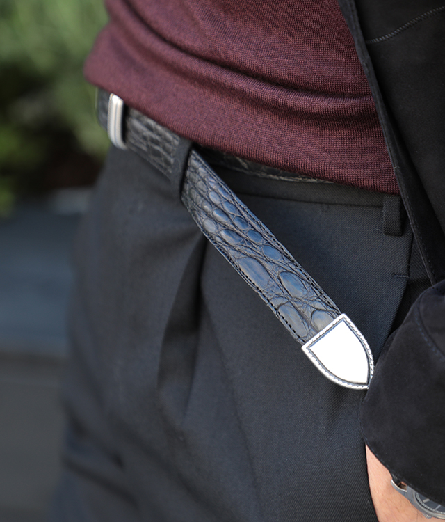 EXCLUSIVE 【ファッションディレクター干場義雅氏別注】【MINIMAL WARDROBE・AMAN ONLINE STORE・菅原靴店 3社限定】ALBERTO LUTI アルベルト ルティ メンズ ベルト クロコダイルレザー プンターレ 30mm幅 BROWN/ブラウン