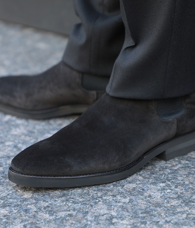 【ふにゃ男シリーズ】WH ダブルエイチ ヒロシツボウチ×干場義雅 サイドゴア ブーツ Vibramソール スエード ヤヌスカーフ WHF-0016J BLK/ブラック
