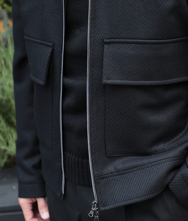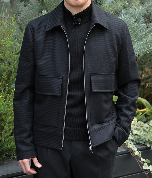 LUIGI BIANCHI SARTORIA ルイジビアンキ サルトリア メンズ ブルゾン A-2 フライトジャケット ウール カシミヤ ショート丈 ダブルジップ 57502 BLACK/ブラック