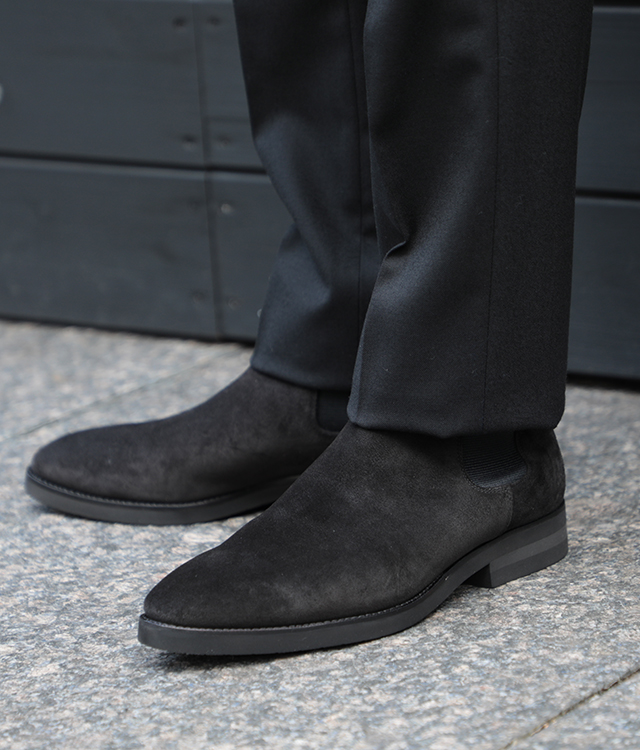 【ふにゃ男シリーズ】WH ダブルエイチ ヒロシツボウチ×干場義雅 サイドゴア ブーツ Vibramソール スエード ヤヌスカーフ WHF-0016J BLK/ブラック