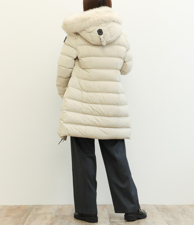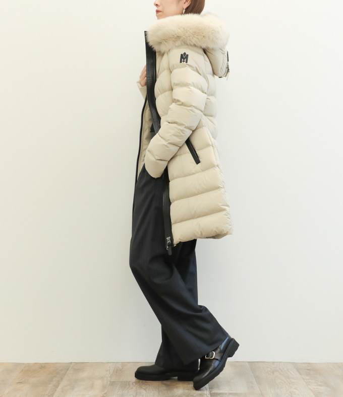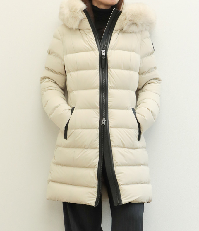 MACKAGE マッカージュ ダウン コート パーカー フーデット ナイロン ストレッチ ロゴ ファー CALLA BX TRENCH/ベージュ