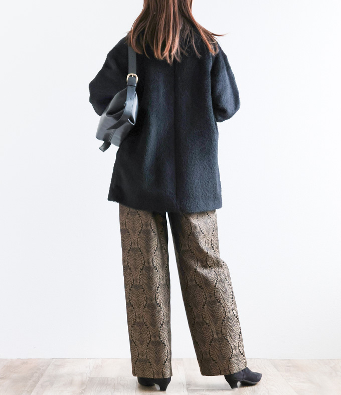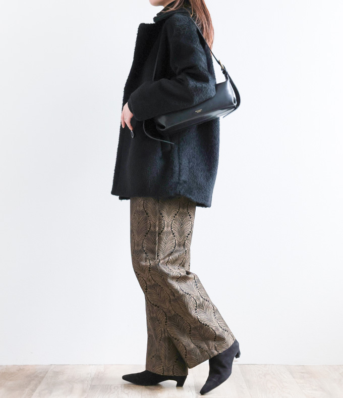 「黒のシンプルに、ひと匙のドラマを。主役パンツでつくる大人の余裕スタイル。」