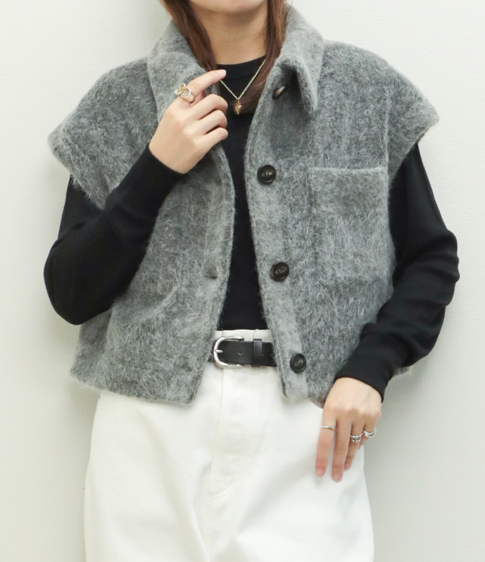 MICA&DEAL マイカアンドディール Vネック ラクーン デュアル カーディガン ラクーン ウール ナイロン ポリエステル 0125308249 CHARCOAL/チャコール