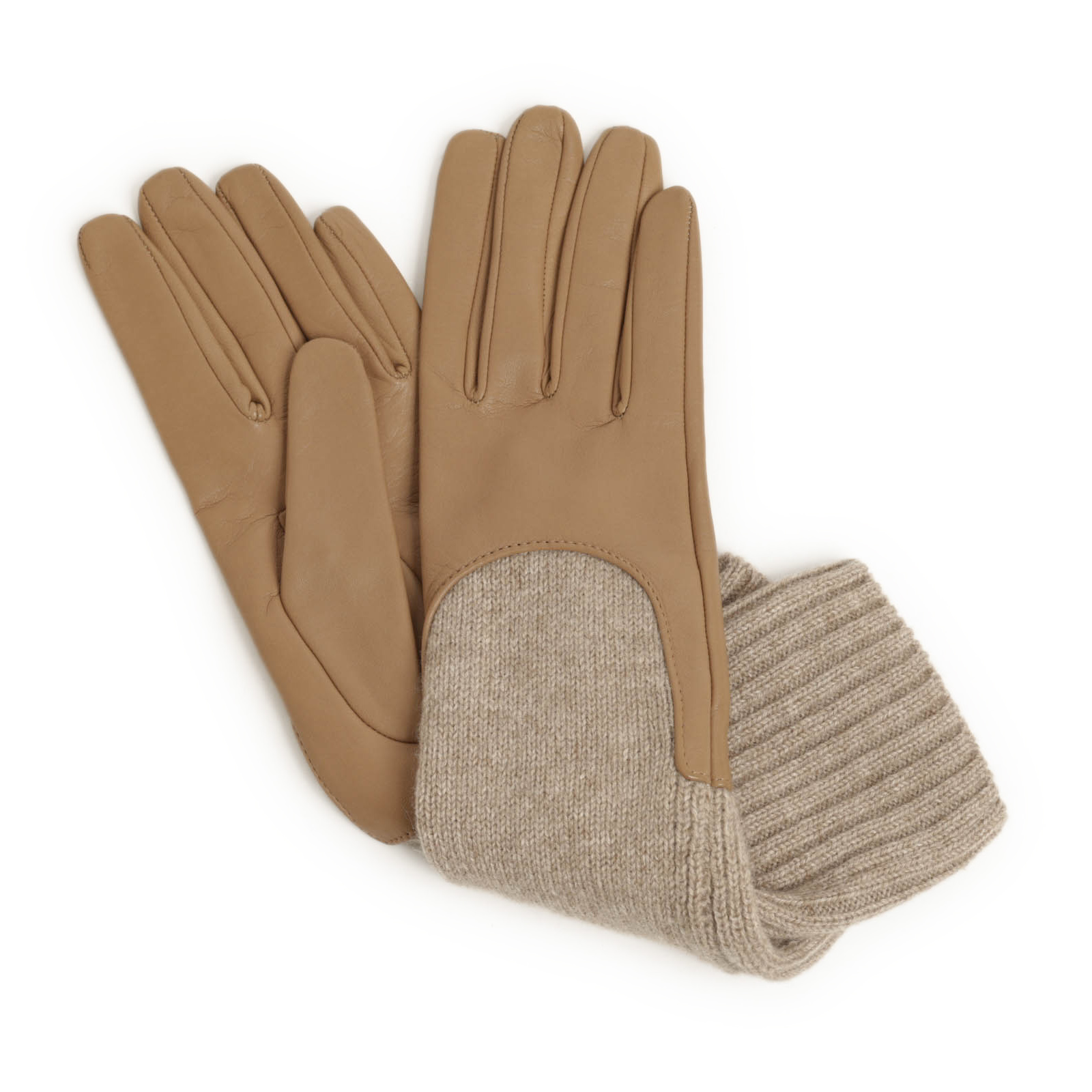 Gala Gloves ガーラグローブス レディース レザー グローブ ニット カシミヤ 素材切り替え D552 NCSFALP ALPACA IRDSDSRT/ベージュ