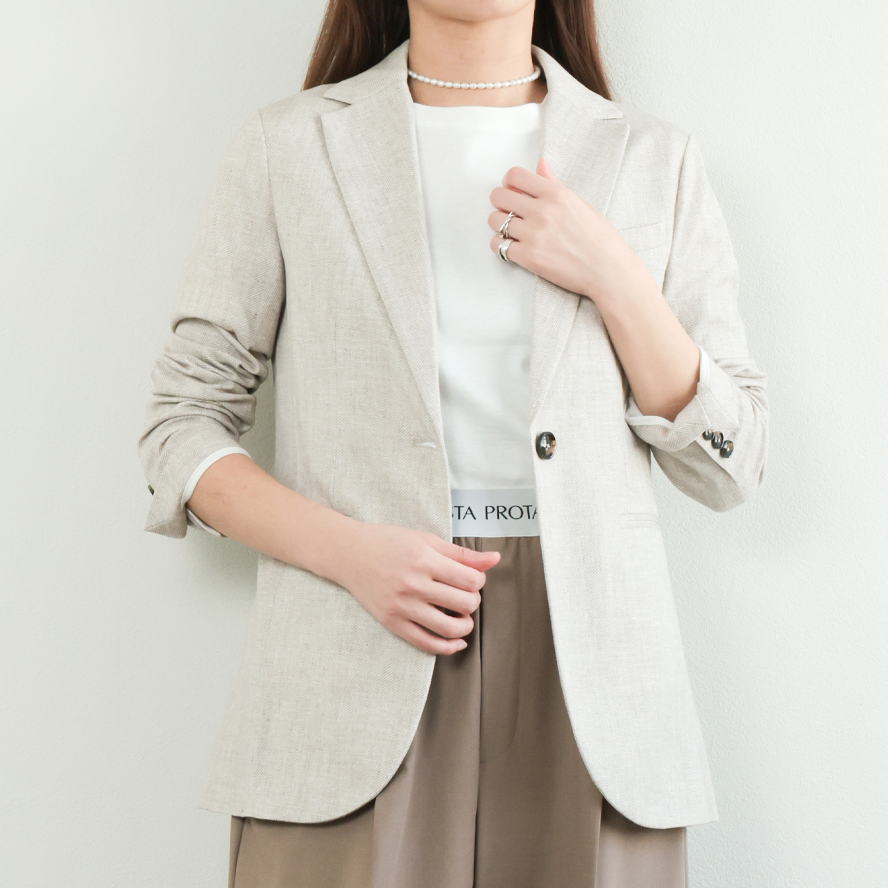 CIRCOLO 1901 チルコロ レディース ジャケット 1B シングル ジャージ コットン ストレッチ ショート丈 総柄 ヘリンボーン柄 6154-394324 FD3943 SLIM LONG S.PRINT TOFU/ベージュ
