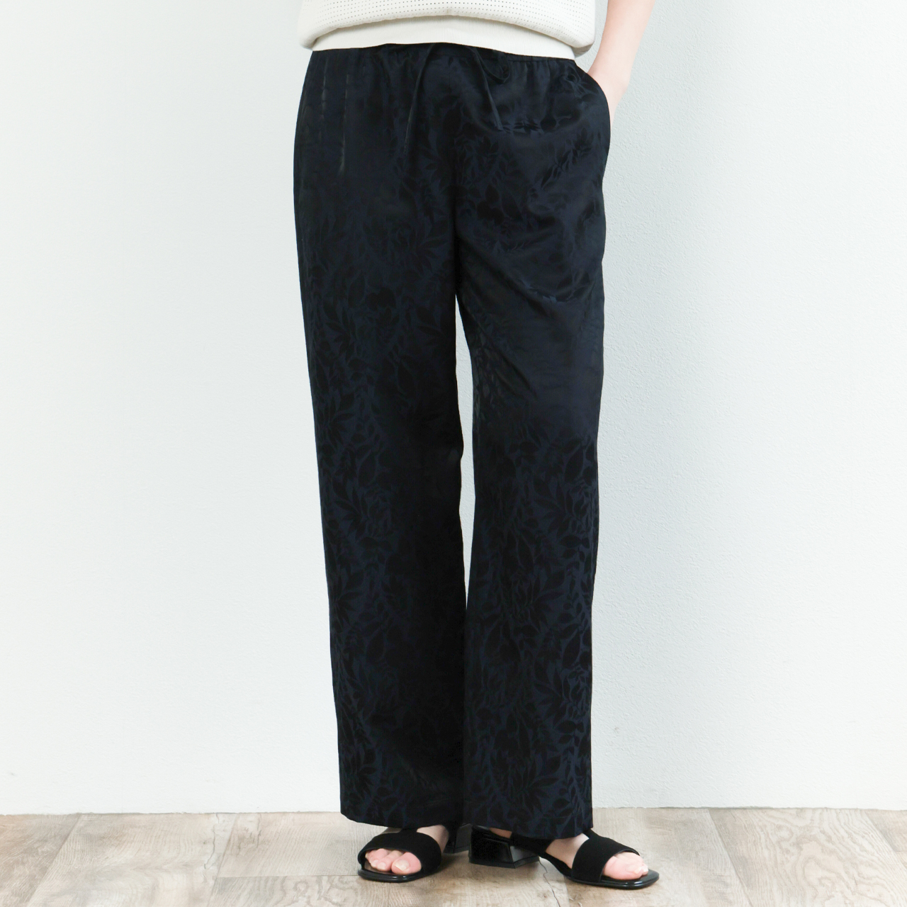 drawell ドロウェル パンツ ワイド ドローストリング ウエストゴム オリジナルリーフ柄 総柄 ポリエステル レーヨン ジャカード織 5-1-DW-29 ネイビー