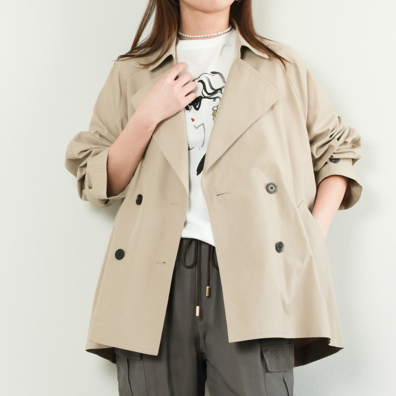marmors マルモア レディース コート トレンチ ショート丈 ラグランスリーブ シャンブレー ポリエステル コットン ギャバジン raglan short trench 0226107019 BEIGE/ベージュ