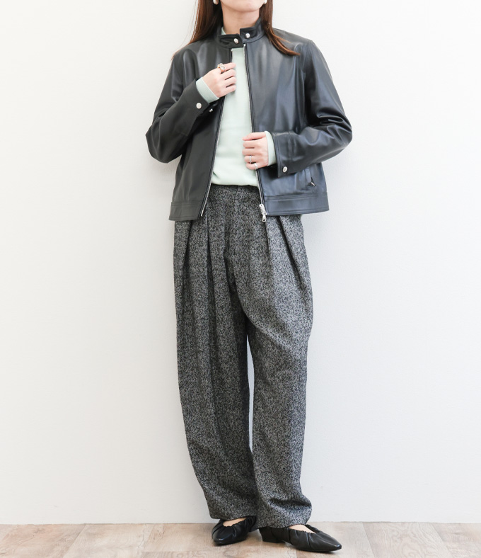 SACRA サクラ レディース ジャケット ダブル 4B ツイード ウール ナイロン ポリエステル アクリル ヘリンボーン オーバーシルエット 125603021 BLACK/ブラック