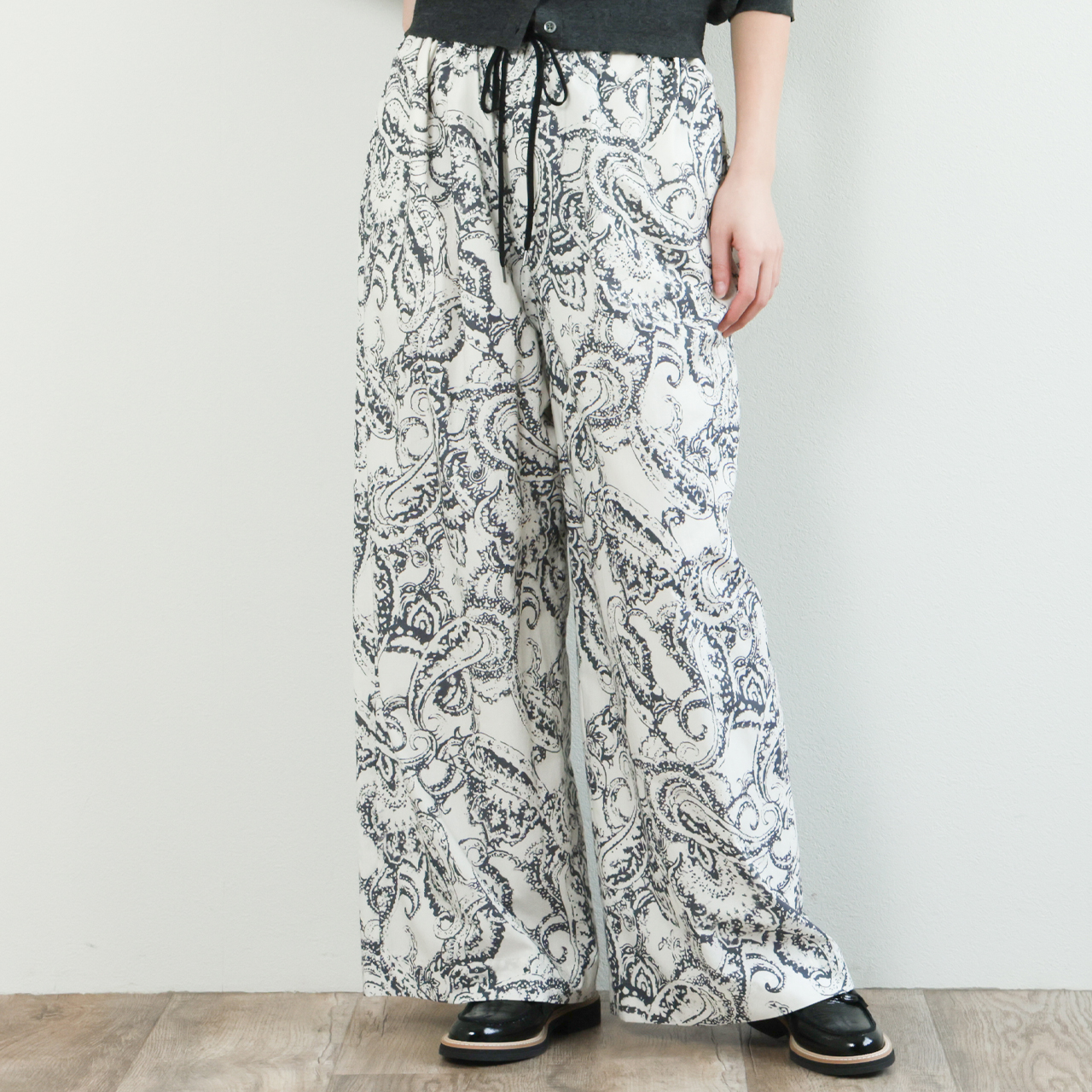 SACRA サクラ レディース パンツ スラックス ワイド コットン ウエストゴム 総柄 ペイズリー BLURRED PAISLEY PANTS 16119111 ECRU/アイボリー