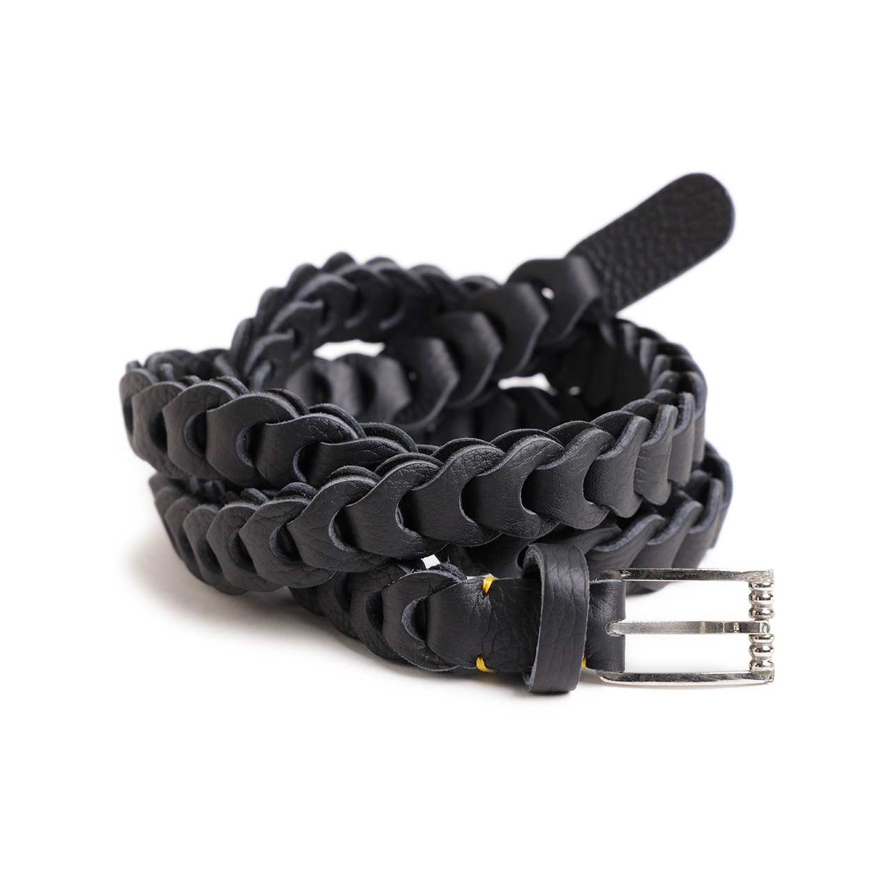 EXCLUSIVE 【菅原靴店 素材別注モデル】il micio イルミーチョ メッシュ レザー ベルト バックル ヴィンテージ シルバー 20mm幅 牛革 ブルレザー BULL BOHO NERO/ブラック