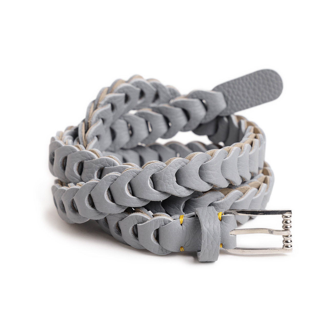 EXCLUSIVE 【菅原靴店 素材別注モデル】il micio イルミーチョ メッシュ レザー ベルト バックル ヴィンテージ シルバー 20mm幅 牛革 ブルレザー BULL BOHO SOURIS/グレー