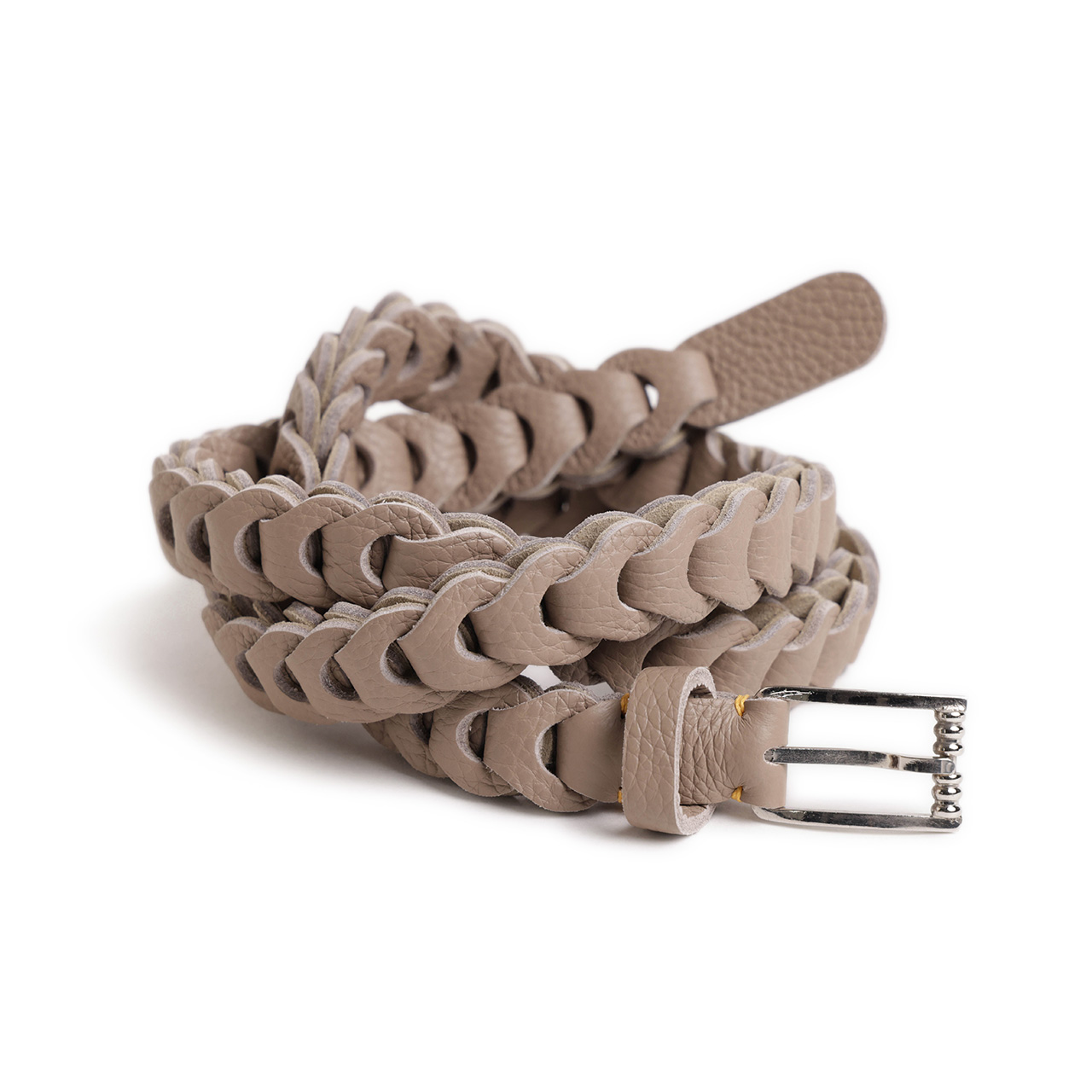 EXCLUSIVE 【菅原靴店 素材別注モデル】il micio イルミーチョ メッシュ レザー ベルト バックル ヴィンテージ シルバー 20mm幅 牛革 ブルレザー BULL BOHO TORTORA/グレージュ
