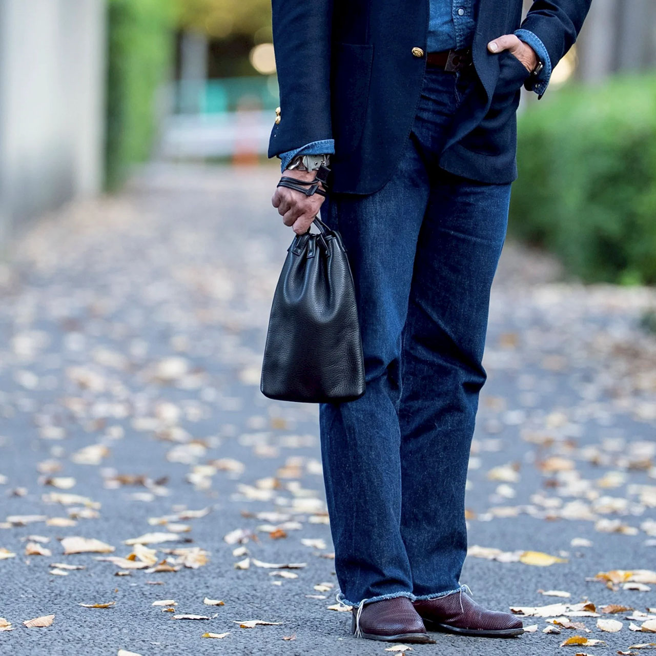 il micio イルミーチョ バッグ 巾着 ドローストリング レザー ブルレザー BOHO B-3 SACHETO NOIR/ブラック