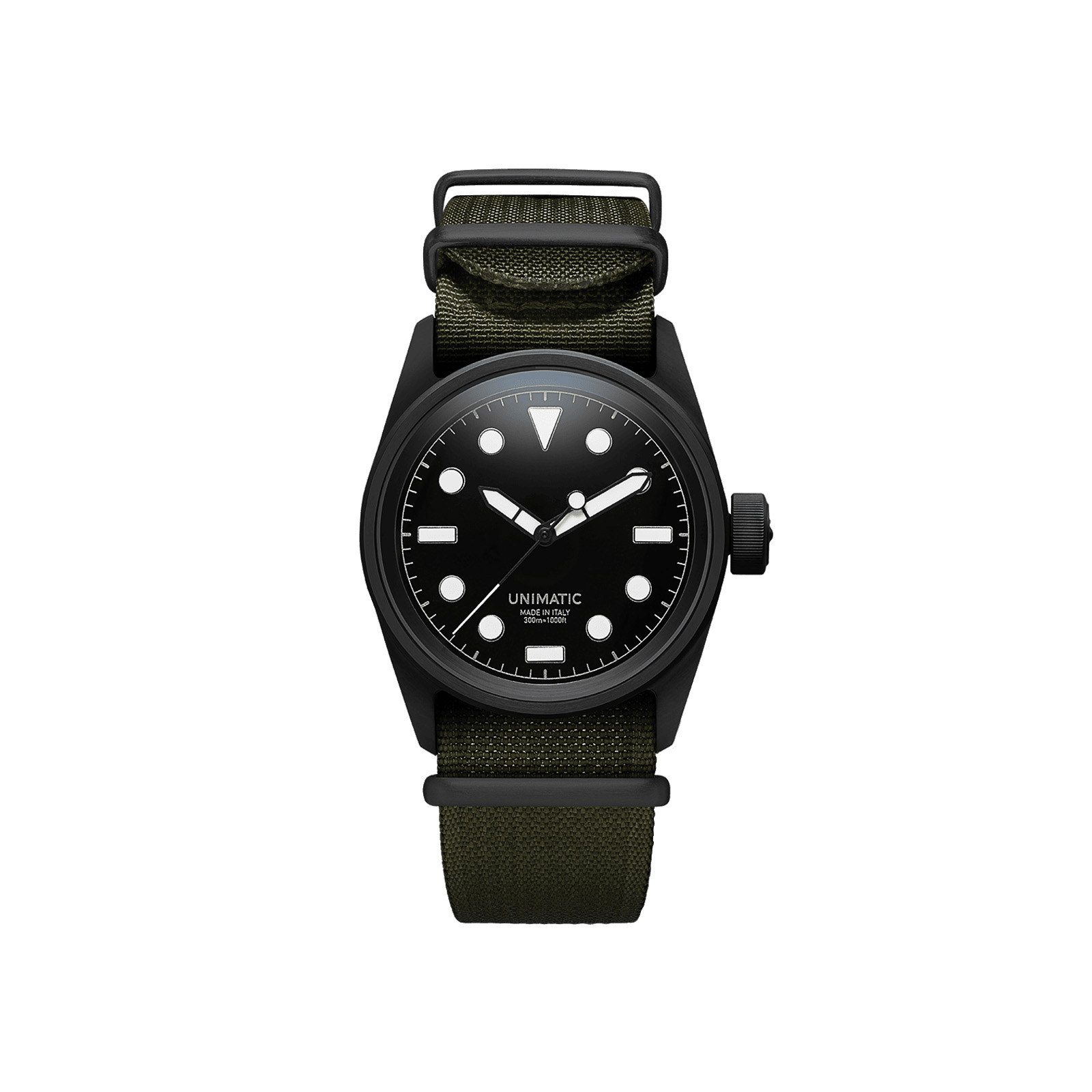 【世界300本限定モデル!】UNIMATIC CLASSIC ウニマティック クラシック モデロサンク 腕時計 オートマチック 自動巻き ダイバーズ スーパールミノバ 夜光 ウニライト ナイロン NATO レザー ストラップ U5S BLN BLACK ブラック BLACK/ブラック