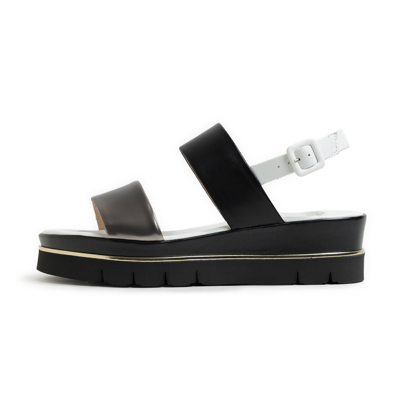 Luca Grossi ルカグロッシ サンダル ストラップ ウエッジ レザー メタリック バックストラップ 厚底 EVA C437S GLOW ROCA ブラック/シルバー