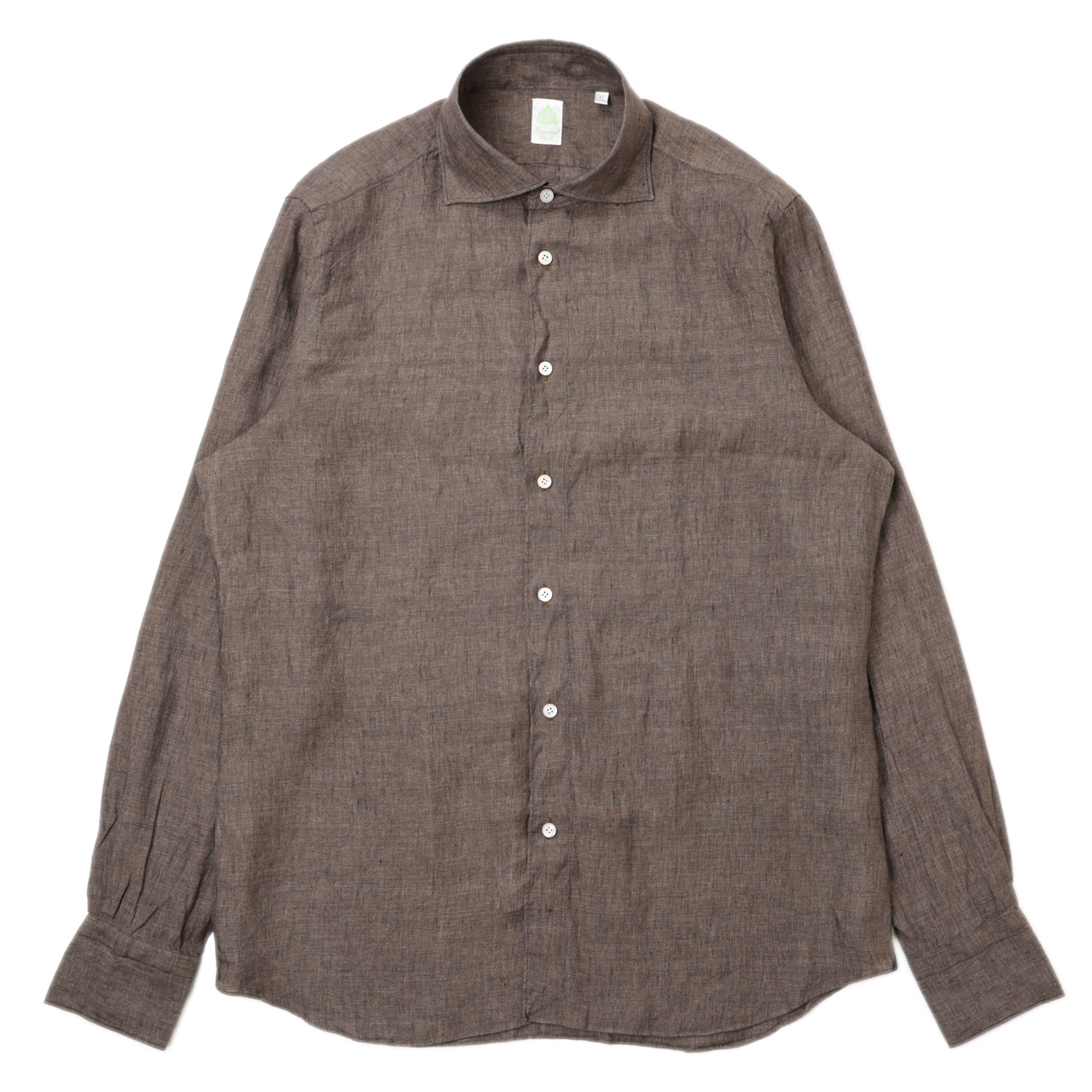 Finamore フィナモレ メンズ シャツ カッタウェイ リネン 麻 SIMONE BALI 長袖 製品洗い 046098 C0650 16/ダークブラウン