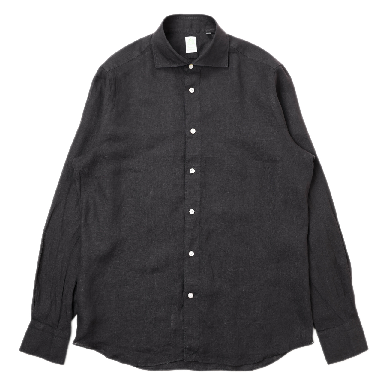 Finamore フィナモレ メンズ シャツ カッタウェイ リネン 麻 SIMONE BALI 長袖 製品洗い 046098 C0650 12/ブラック