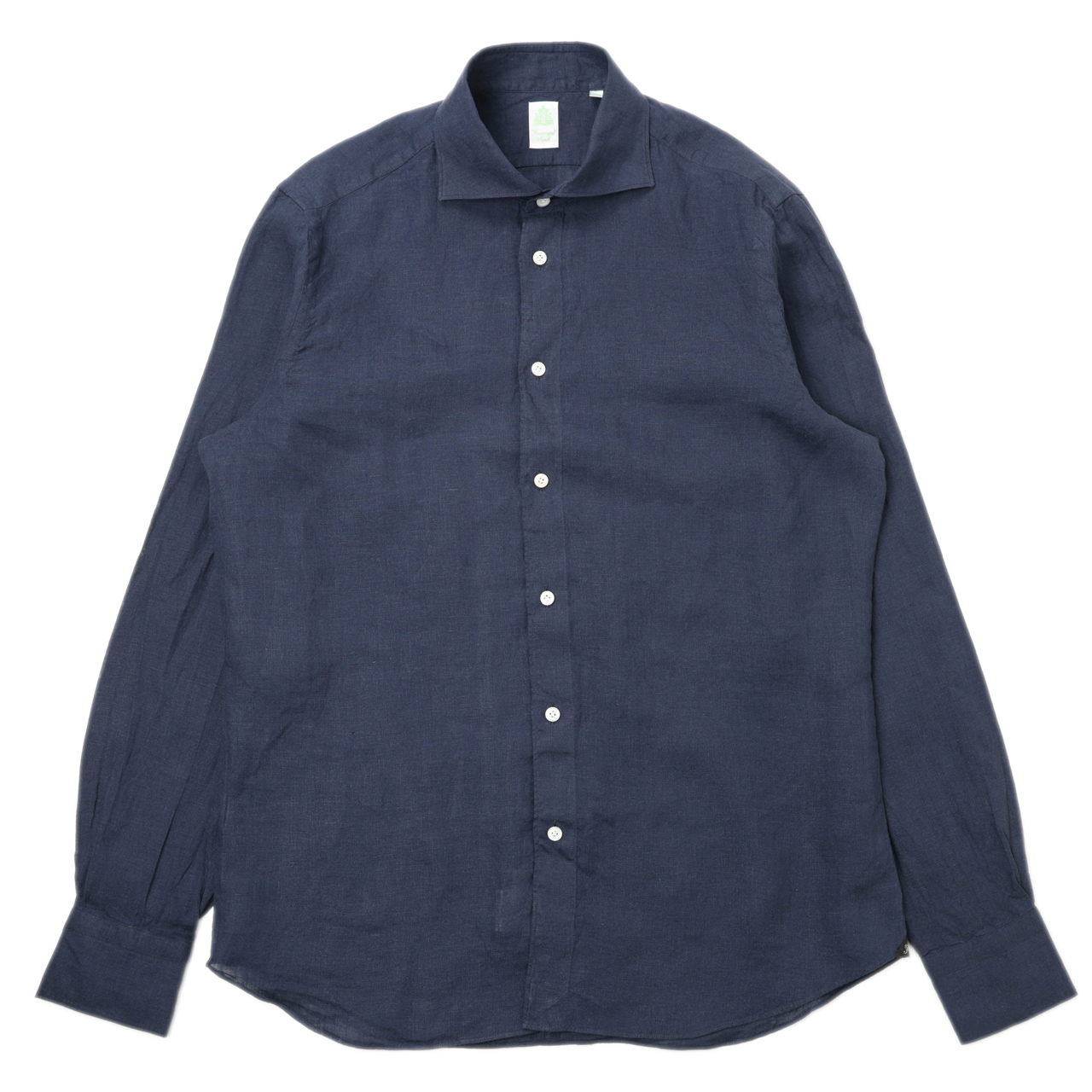 Finamore フィナモレ メンズ シャツ カッタウェイ リネン 麻 SIMONE BALI 長袖 製品洗い 046098 C0650 11/ネイビー