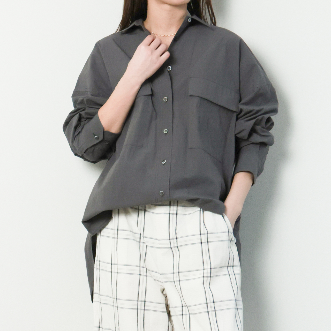 SACRA サクラ レディース シャツ ブラウス オーバーサイズ ワッシャー コットン 高密度コットン HIGH COUNT COTTON TUMBLE 126112071 CHARCOAL/チャコール
