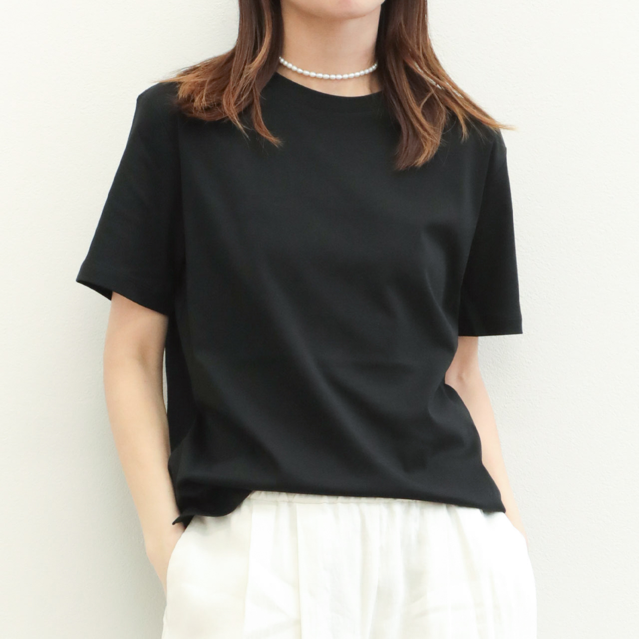 nomiamo ノミアモ カットソー Tシャツ クルーネック 半袖 プルオーバー コットン スーピマコットン WDF nom-1USP BLACK/ブラック