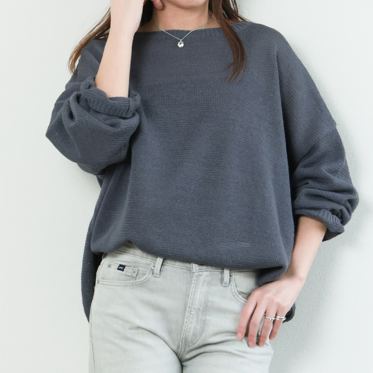 MICA&DEAL マイカアンドディール レディース プルオーバー ニット ボートネック ニュアンスニット ルーズフィット コットン boatneck loose pullover 0126108039 DARK GRAY/ダークグレー