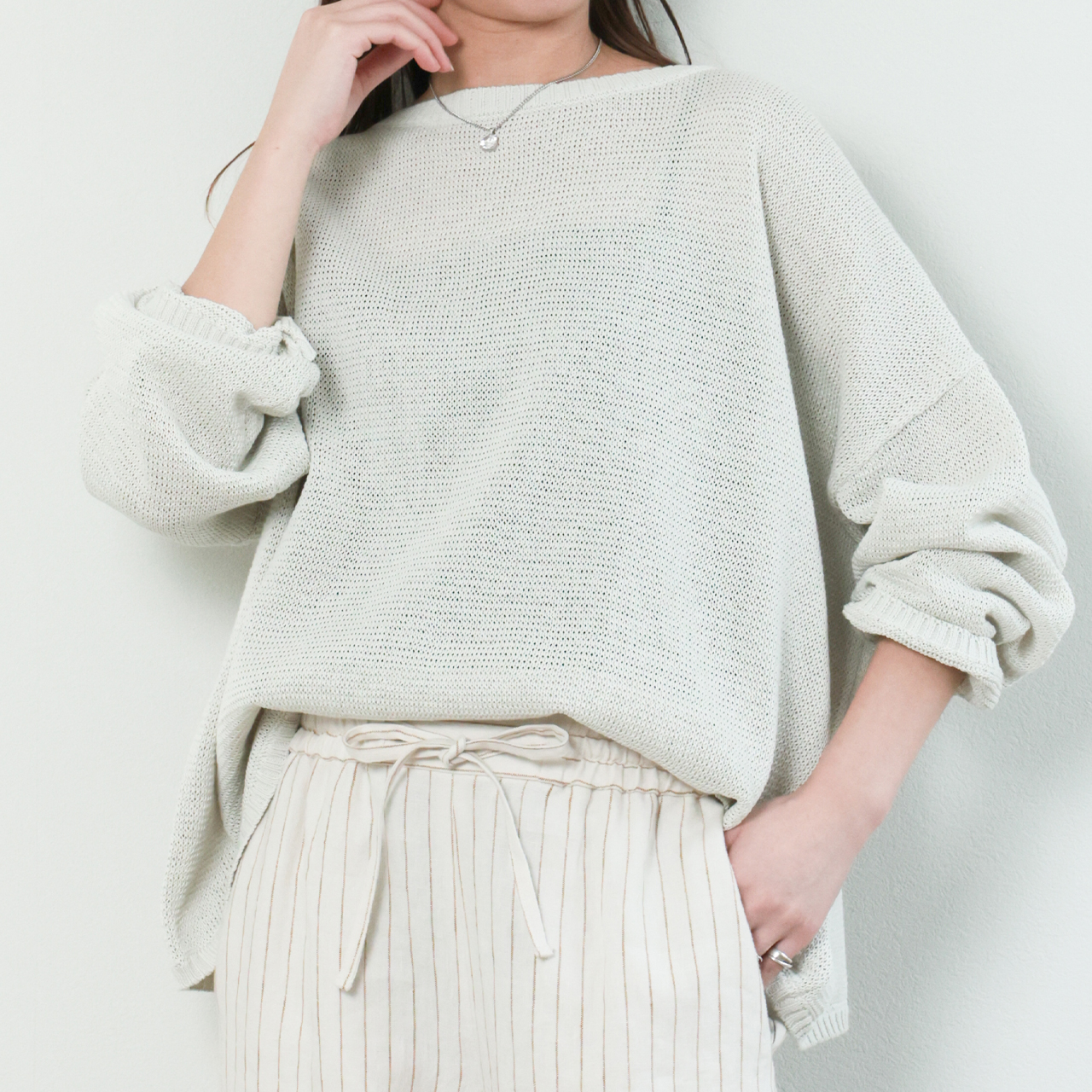 MICA&DEAL マイカアンドディール レディース プルオーバー ニット ボートネック ニュアンスニット ルーズフィット コットン boatneck loose pullover 0126108039 GREIGE/グレージュ