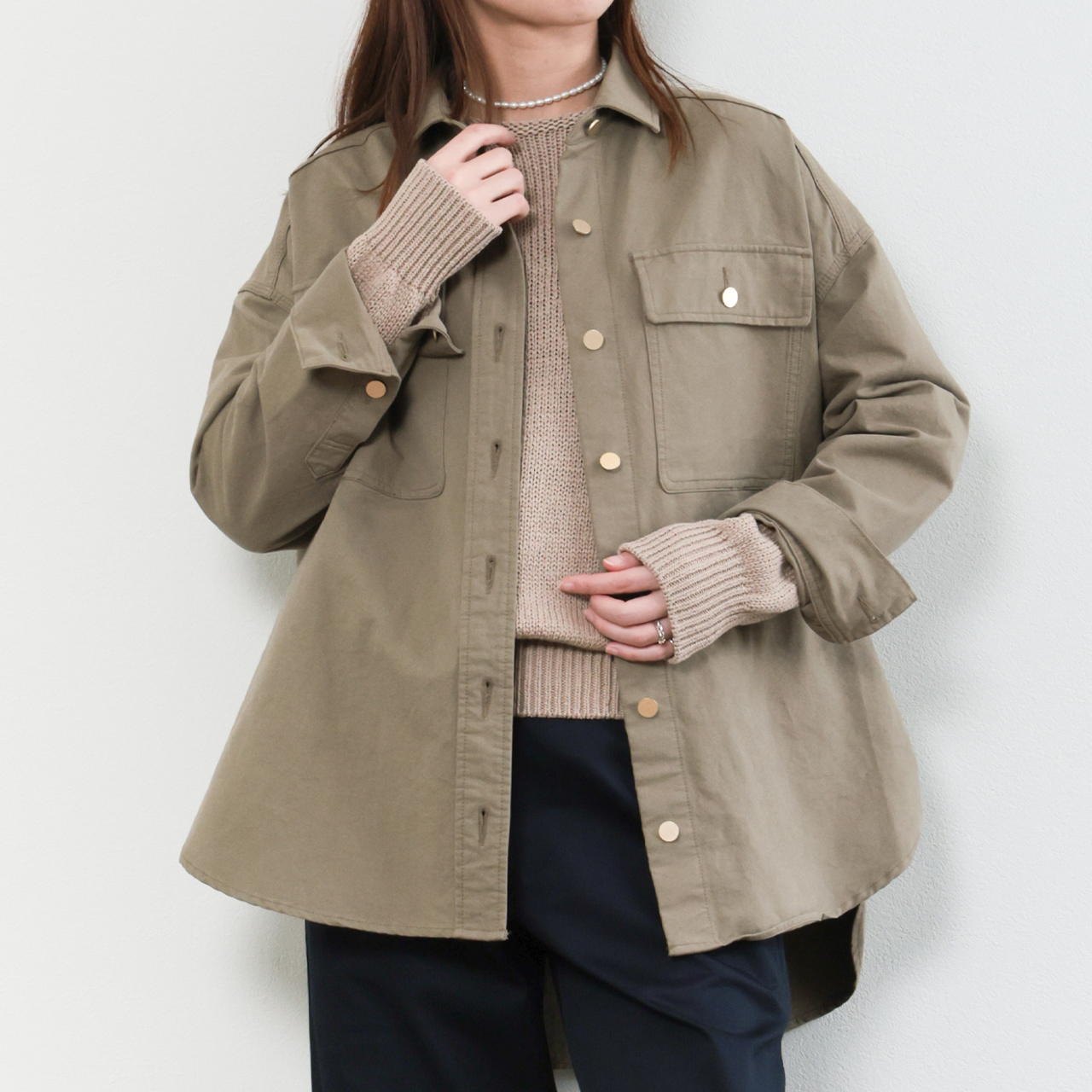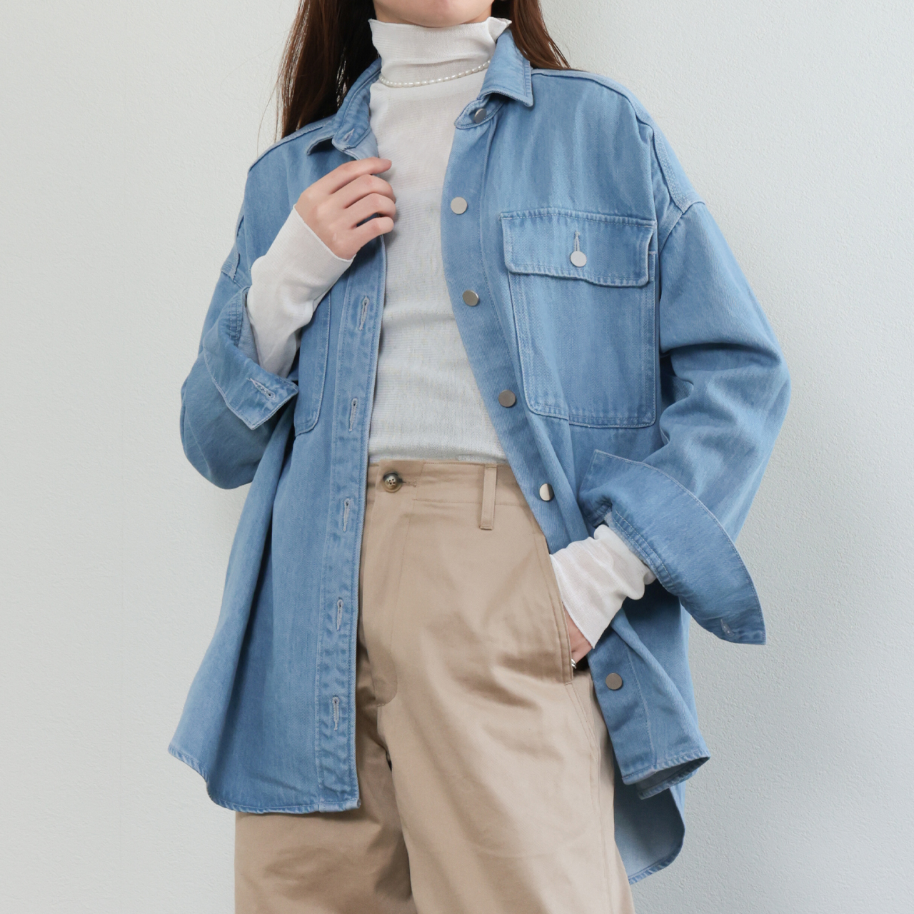 marmors マルモア シャツ レディース ブラウス 長袖 デニム リヨセル コットン アセテート ウォッシャブル loose shirt 0226101005 KHAKI/カーキ