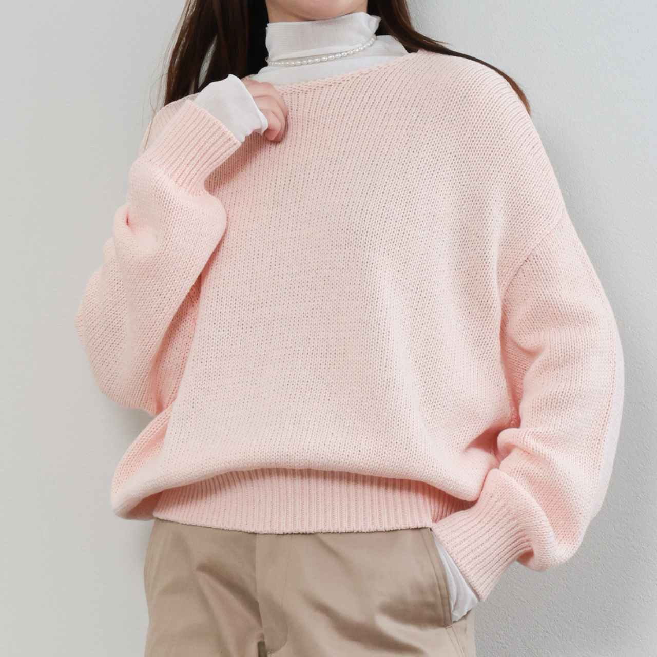 marmors マルモア レディース ニット ボートネック 長袖 コットン テープヤーン ルーズニット tape yarn color loose knit 0226108001 PINK/ピンク