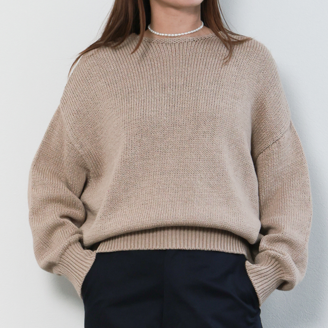 marmors マルモア レディース ニット ボートネック 長袖 コットン テープヤーン ルーズニット tape yarn color loose knit 0226108001 GREGE/グレージュ