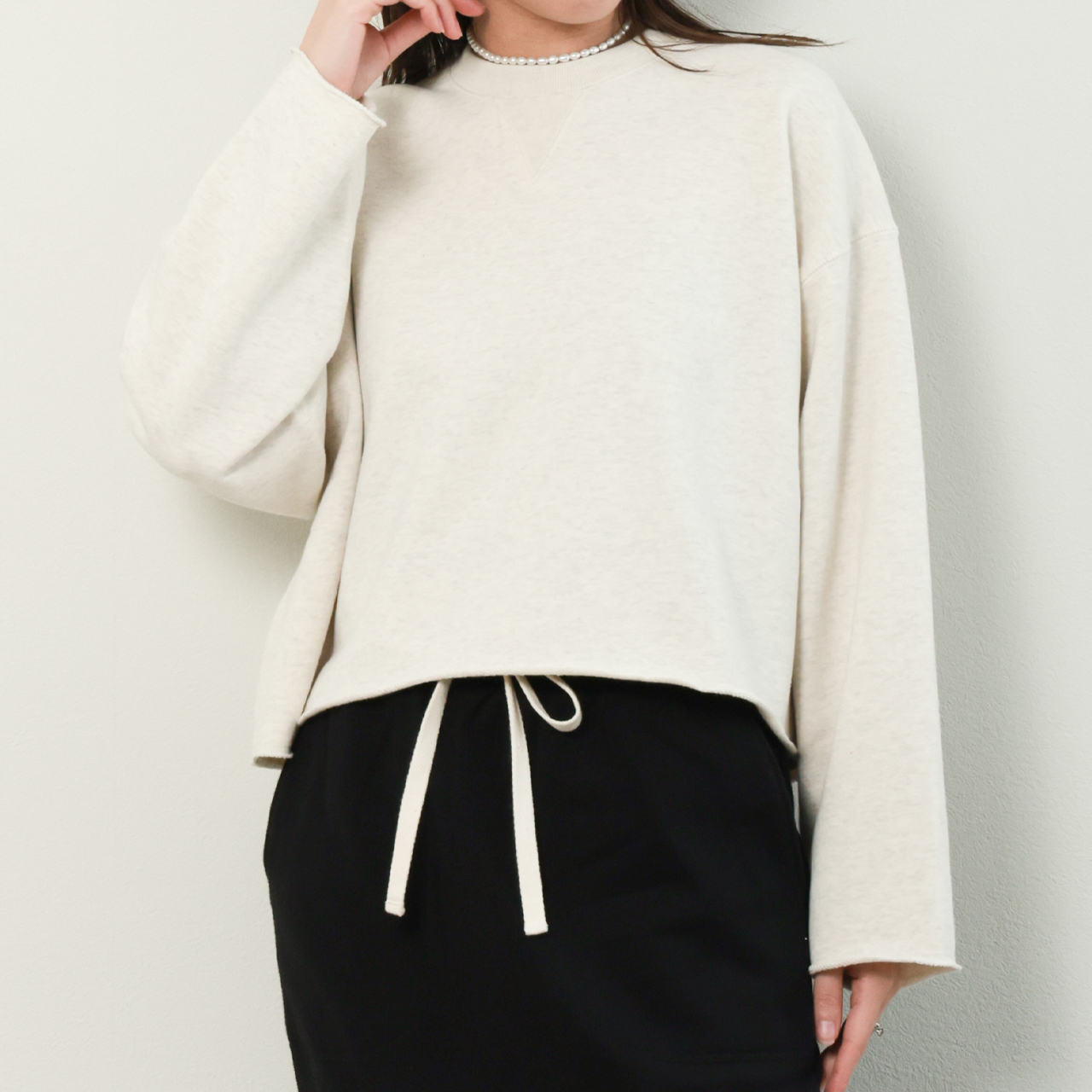 SACRA サクラ レディース スウェット コットン 長袖 丸首 クロップド カットオフ EXTRA FINE FLEECE 126141091 ECRU/アイボリー