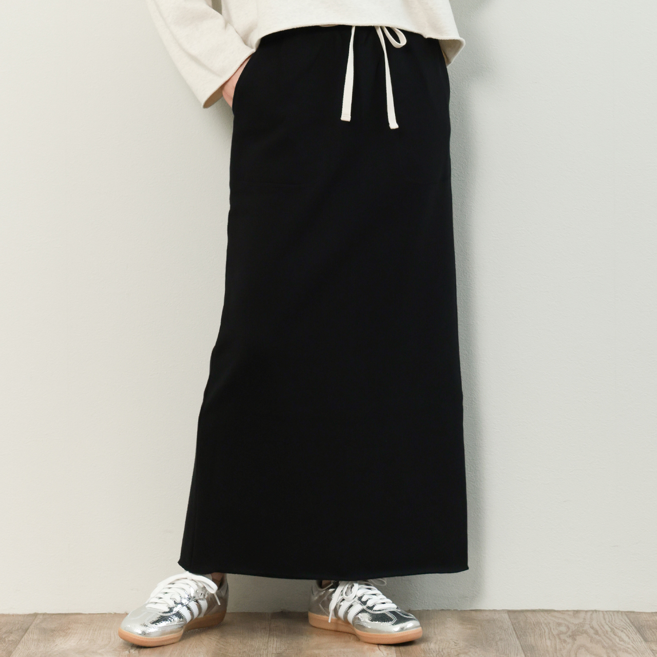 SACRA サクラ スカート スウェット レディース ロング ウエストゴム ドローコード EXTRA FINE FLEECE 126142122 BLACK/ブラック
