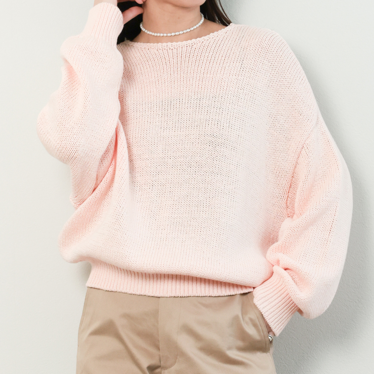 marmors マルモア レディース ニット ボートネック 長袖 コットン テープヤーン ルーズニット tape yarn color loose knit 0226108001 PINK/ピンク