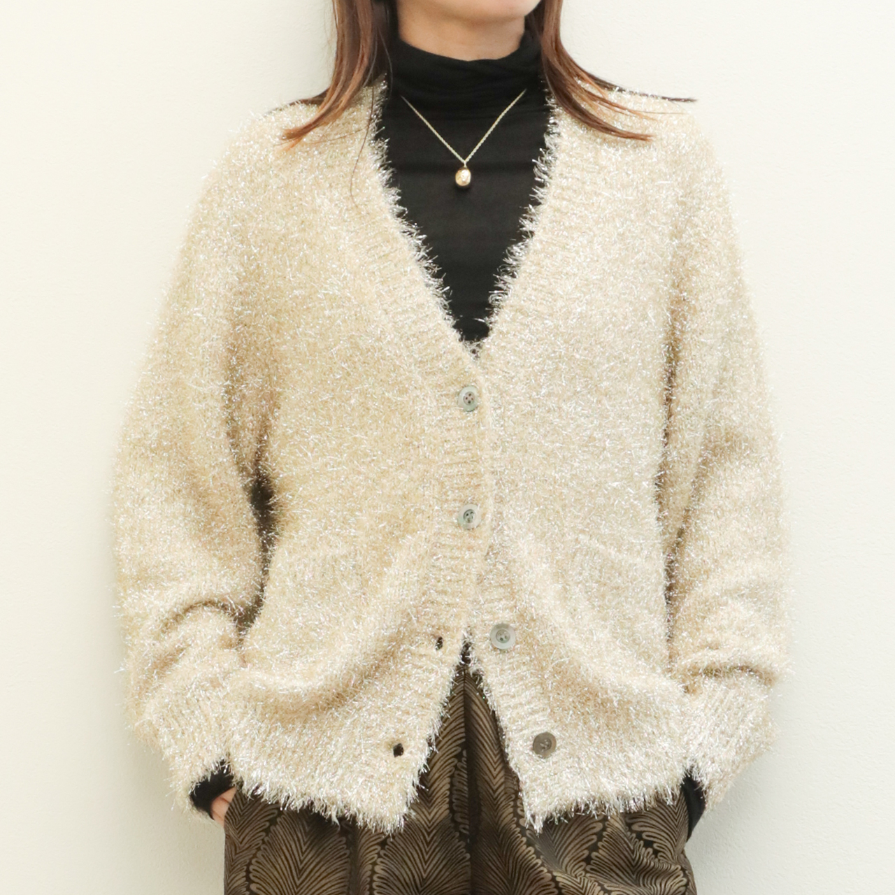 drawell ドロウェル カーディガン Vネック ニット メタルフィルムヤーン キュプラ ポリエステル 4-2-DW-51 ゴールド
