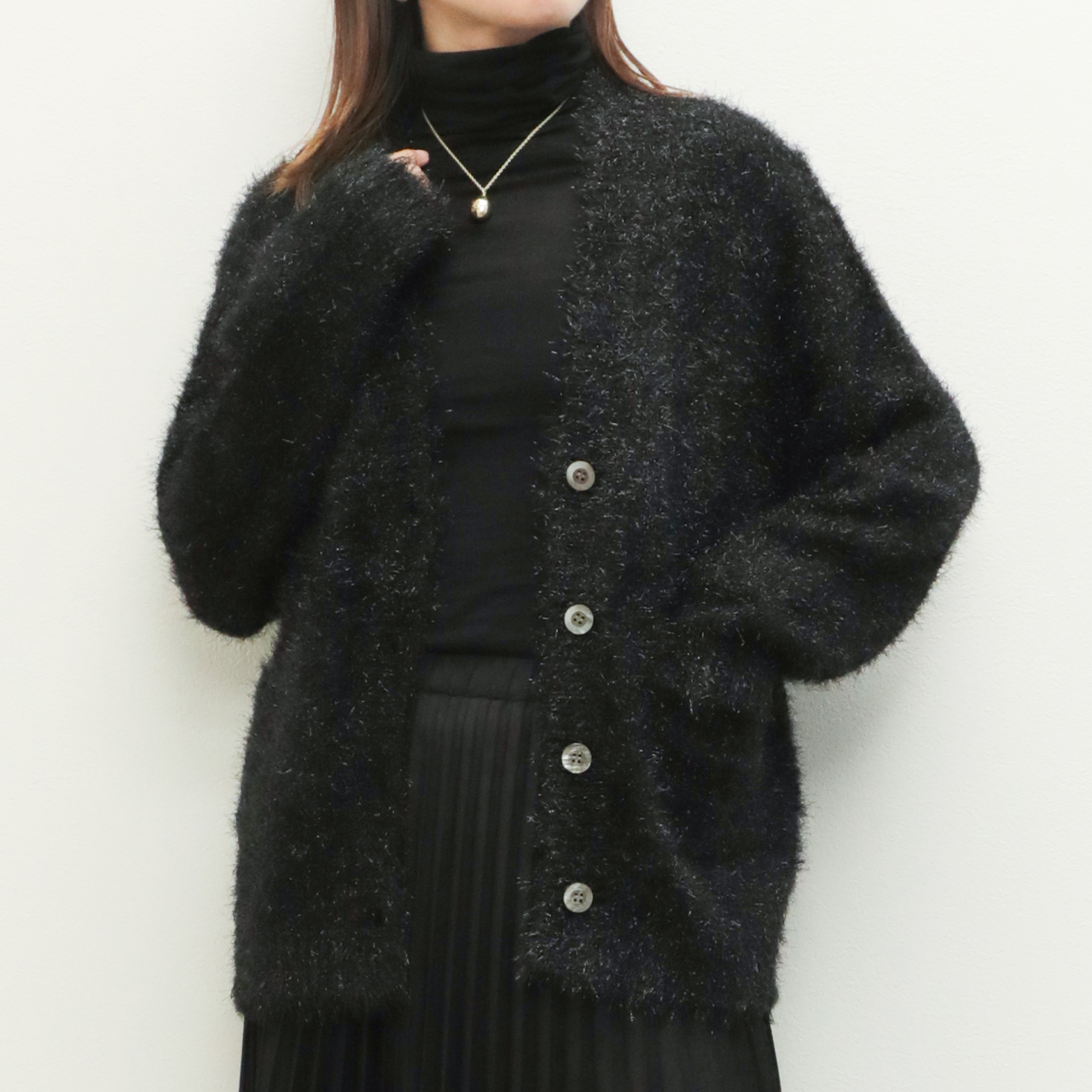 drawell ドロウェル カーディガン Vネック ニット メタルフィルムヤーン キュプラ ポリエステル 4-2-DW-51 ブラック