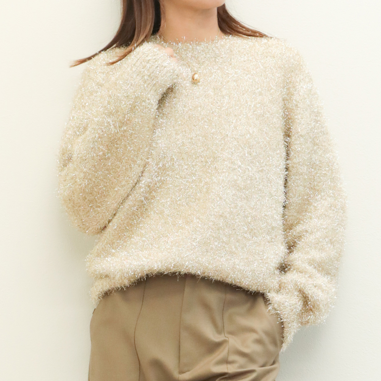 drawell ドロウェル ニット クルーネック メタルフィルムヤーン キュプラ ポリエステル 無地 4-2-DW-52 ゴールド