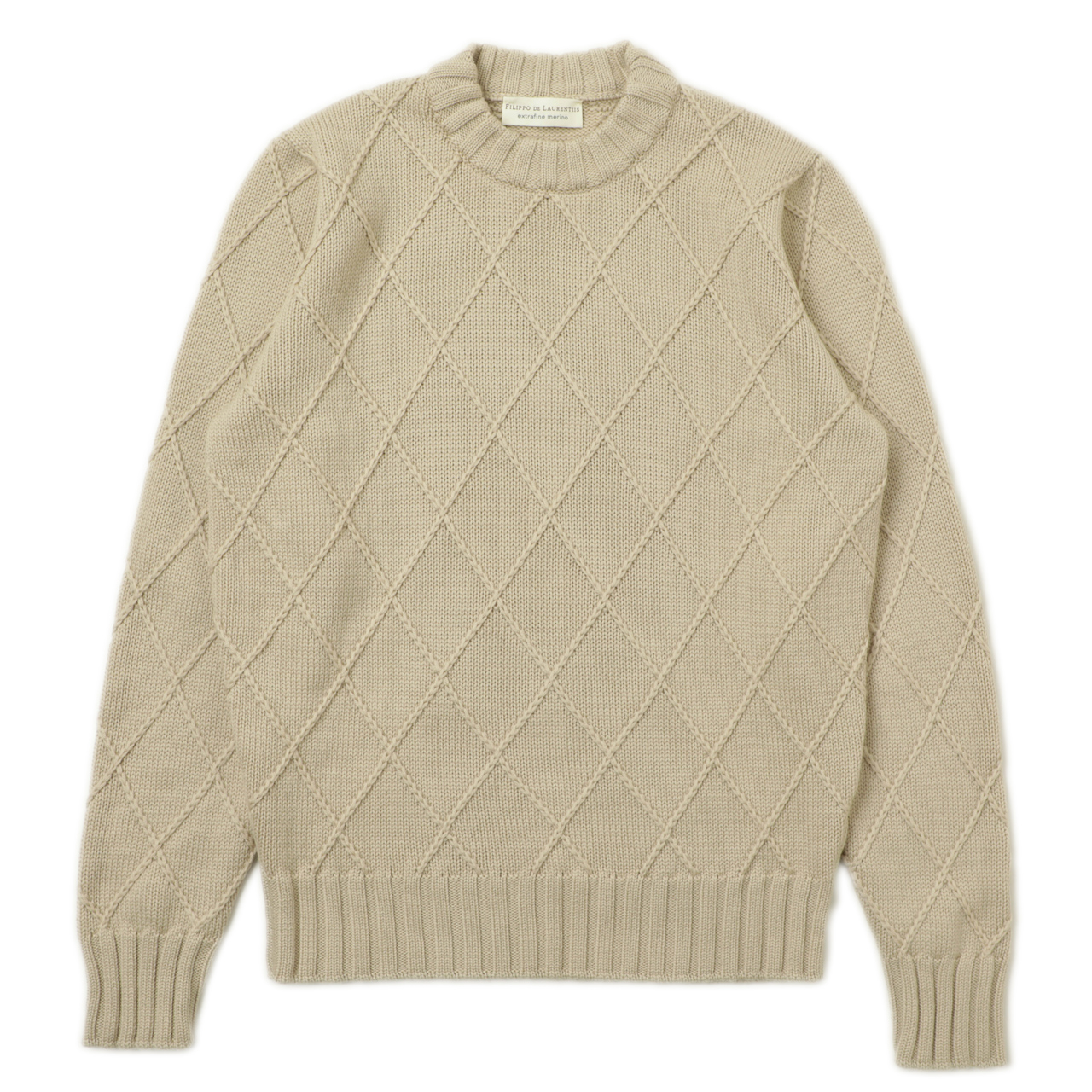 FILIPPO DE LAURENTIIS フィリッポ デ ローレンティス メンズ ニット 長袖 クルーネック ウール リブ ダイヤ柄 GC3ML WM5D 5210-GC3ML58 0061/ベージュ