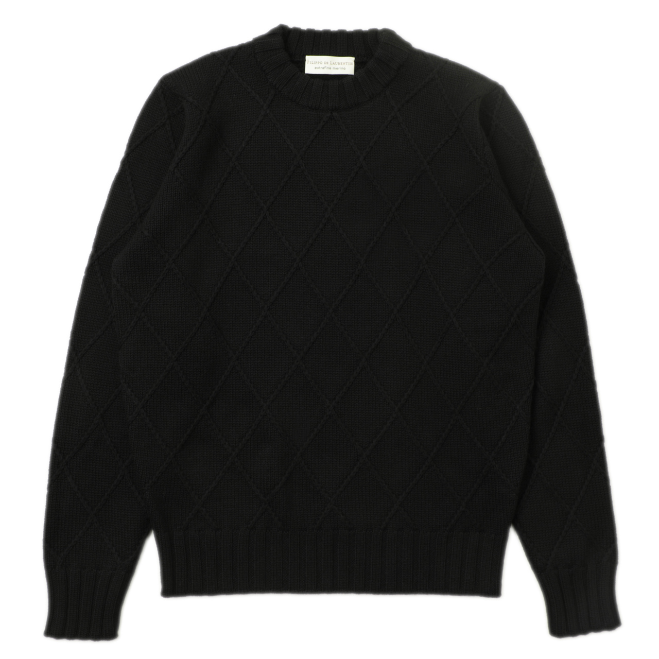 FILIPPO DE LAURENTIIS フィリッポ デ ローレンティス メンズ ニット 長袖 クルーネック ウール リブ ダイヤ柄 GC3ML WM5D 5210-GC3ML58 0990/ブラック