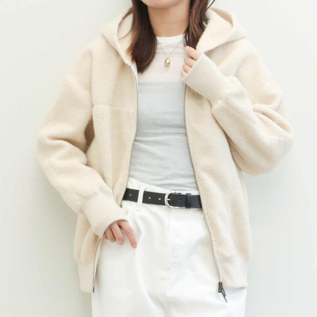 PROTAGONISTA プロタゴニスタ ニット パーカー フーディー ダブルジップ ボア ウール ポリエステル ナイロン コットン レーヨン アクリル PNT-CT-97 OATMEAL/ベージュ