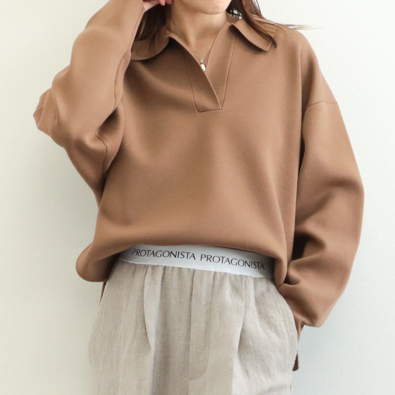 PROTAGONISTA プロタゴニスタ ニット ハイゲージ スキッパー 長袖 ドロップショルダー ミラノリブ ウール ポリエステル PNT-KT-66 BROWN/ブラウン