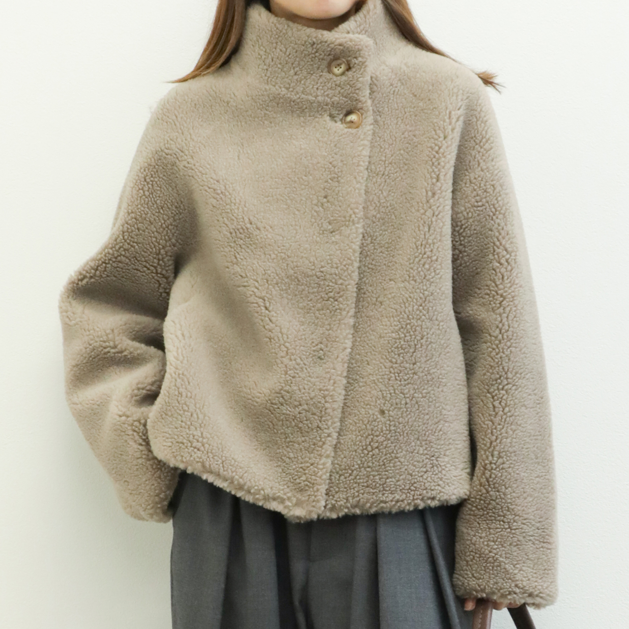 STUDIO AR スタジオエーアール ジャケット レディース ポリエステル ウール ボア リバーシブル ショート丈 MALLOW Teddy Wool Pebble/ベージュ