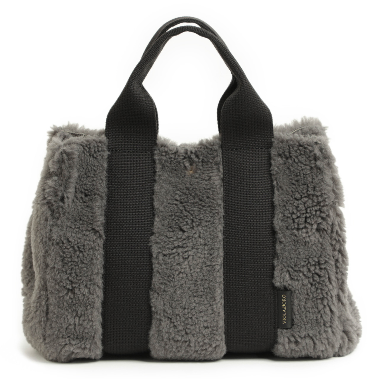 VIOLAd'ORO ヴィオラドーロ トート ハンド ショルダー バッグ フェイクムートン ボア ポリエステル アクリル ウール 2WAY V-8548 DARK GRAY/ダークグレー