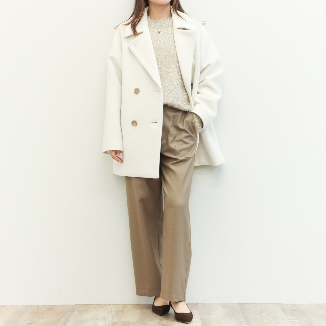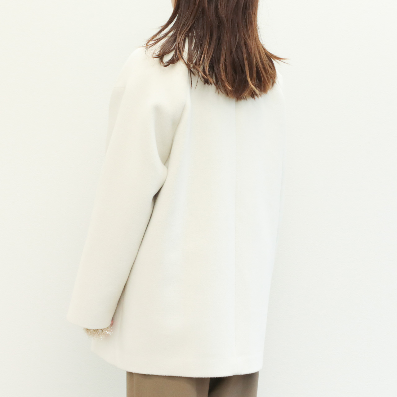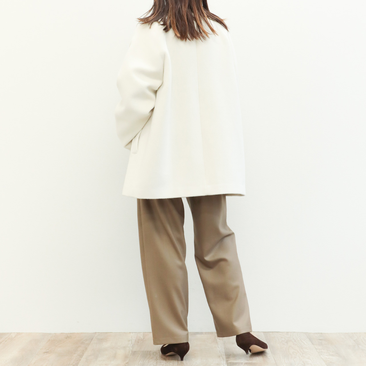 ボトムスはタイトからワイドまで幅広く合わせていただける万能なシルエット。開けても閉めても美しいシルエットで使用頻度の高い一着となること間違いなしです!