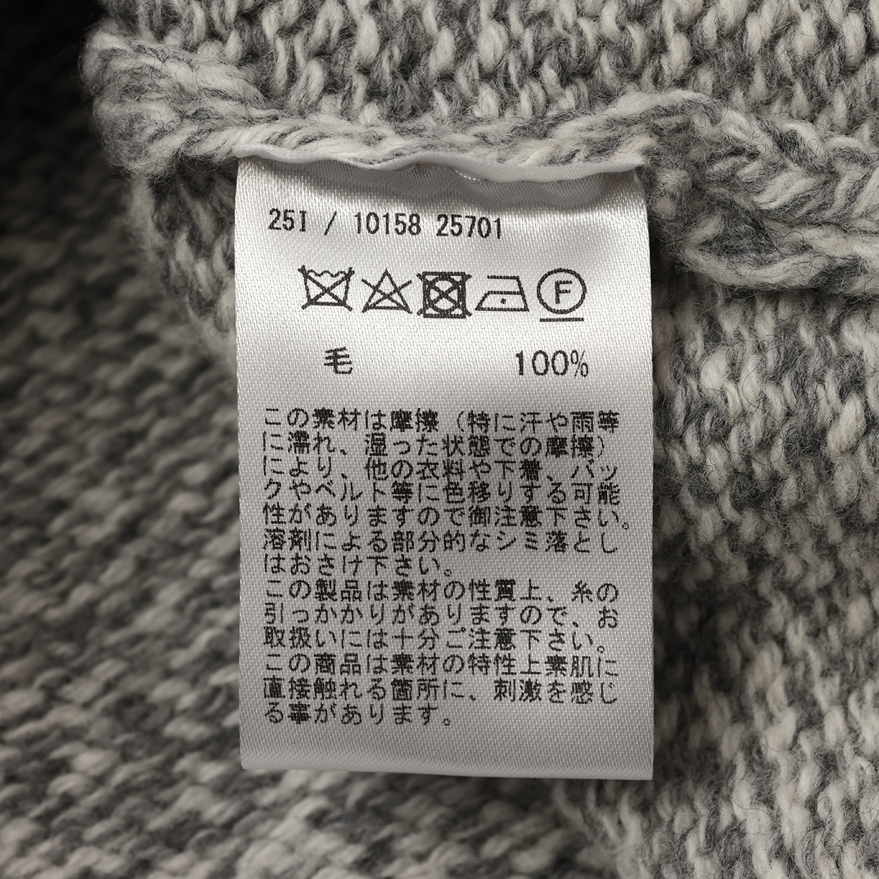 シルエットはGranSassoらしく綺麗に仕上げられており、一枚での着用が前提となっている為か、インナー使いもできる定番のハイゲージニットに比べると多少楽に感じられるため、タイトさを考慮した1サイズアップは必要なさそうです。