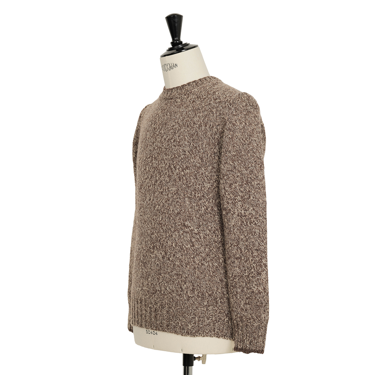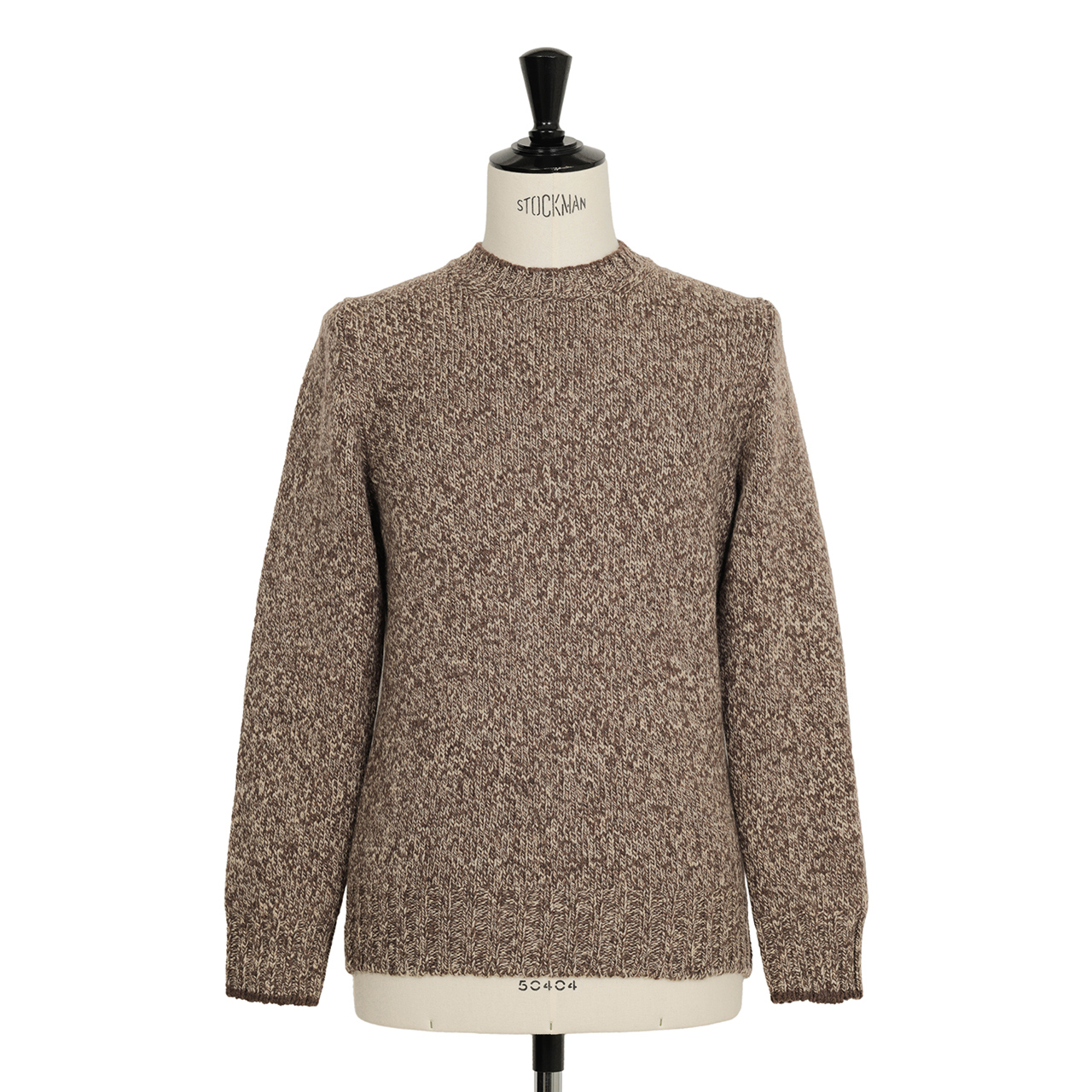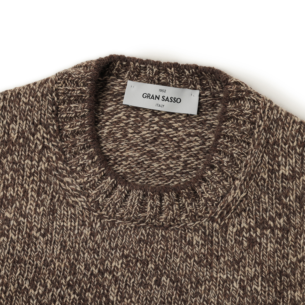 Gran Sasso グランサッソ ニット クルーネック ミドルゲージ ウール スーパージーロン 5ゲージ メランジ 長袖 10158 25701 853/ブラウン