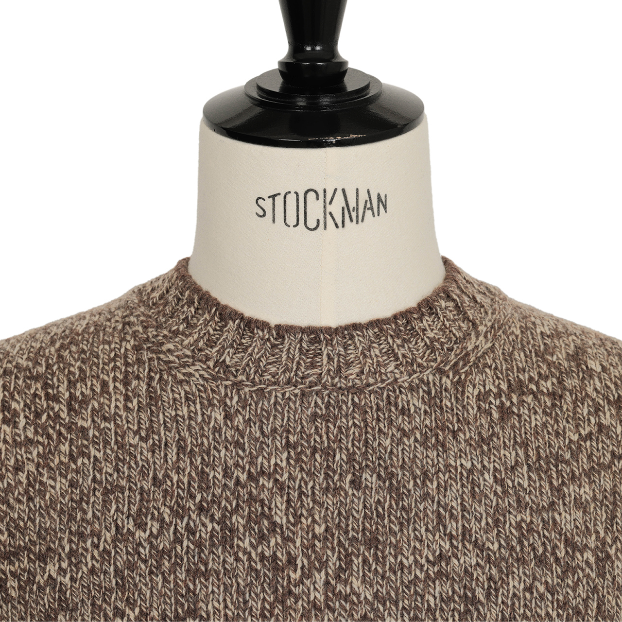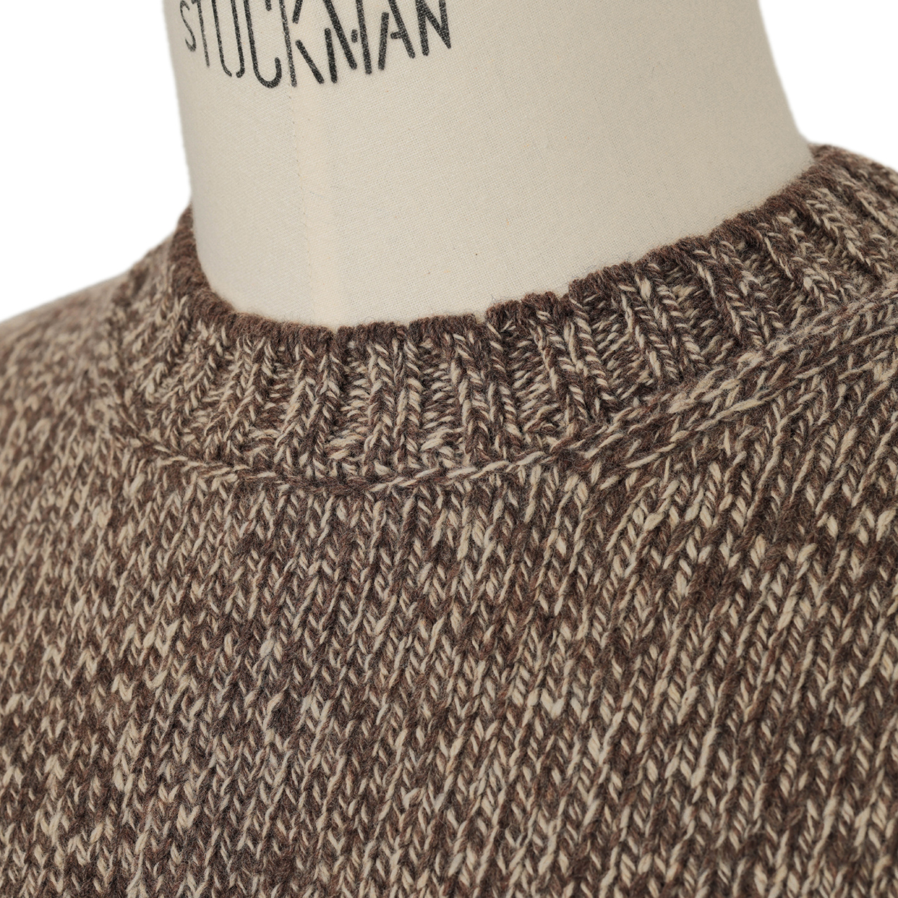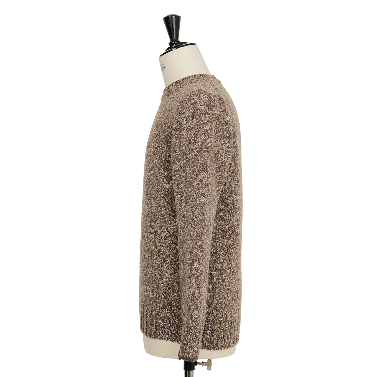 Gran Sasso グランサッソ ニット クルーネック ミドルゲージ ウール スーパージーロン 5ゲージ メランジ 長袖 10158 25701 853/ブラウン