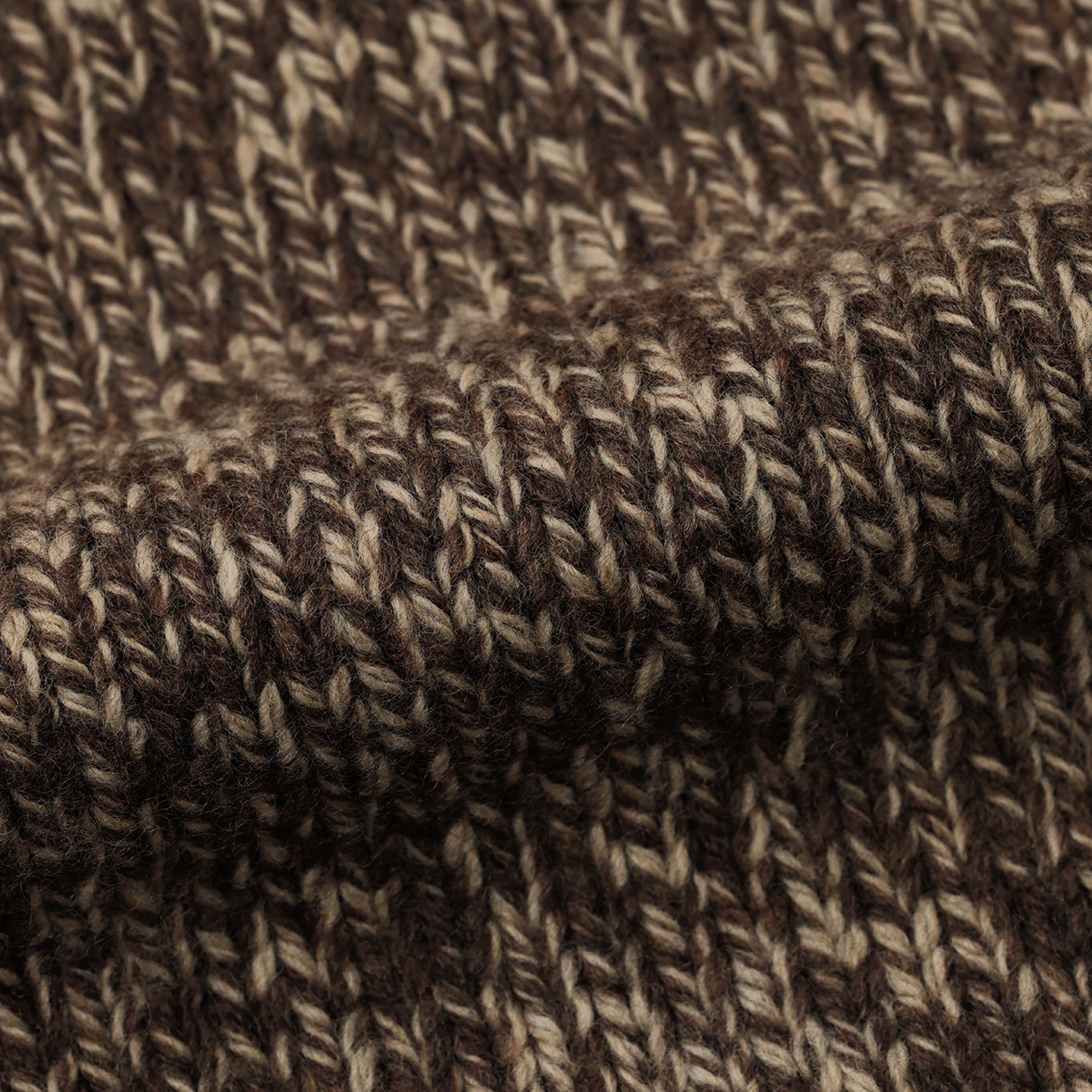 柔らかく軽量で、ネック部分もチクチク感がなく非常に快適な着心地を実現。発色の良さが特徴のこの素材らしくブラウン、グレーそれぞれのメランジカラーが綺麗に出ています。