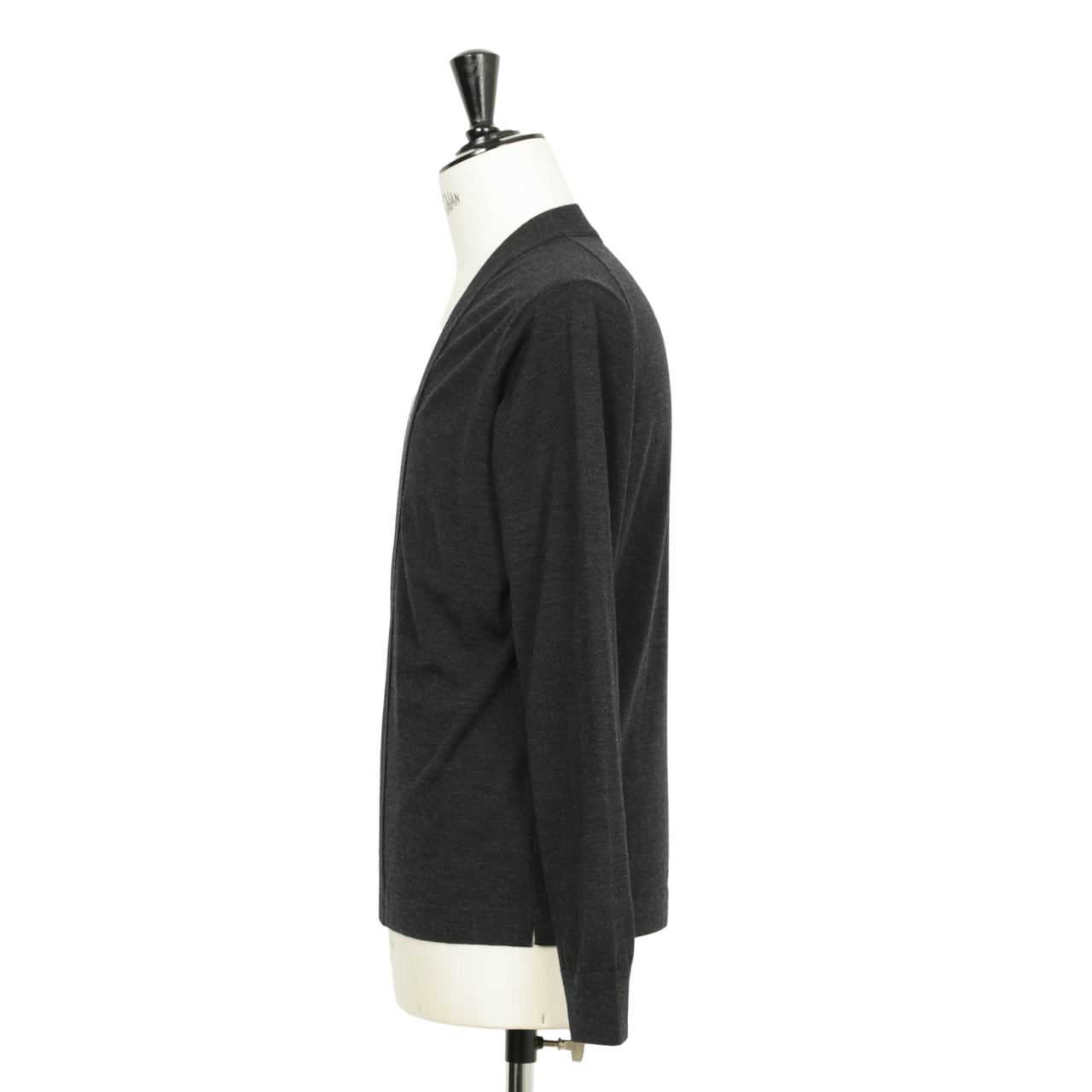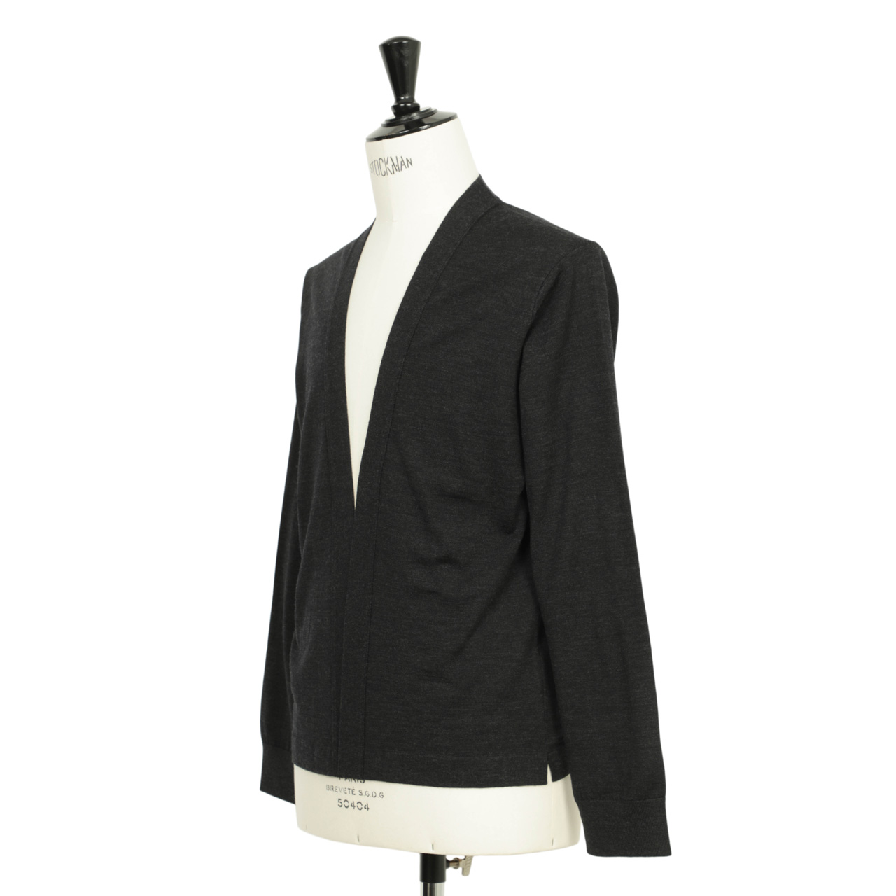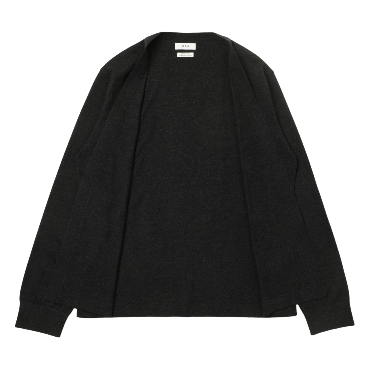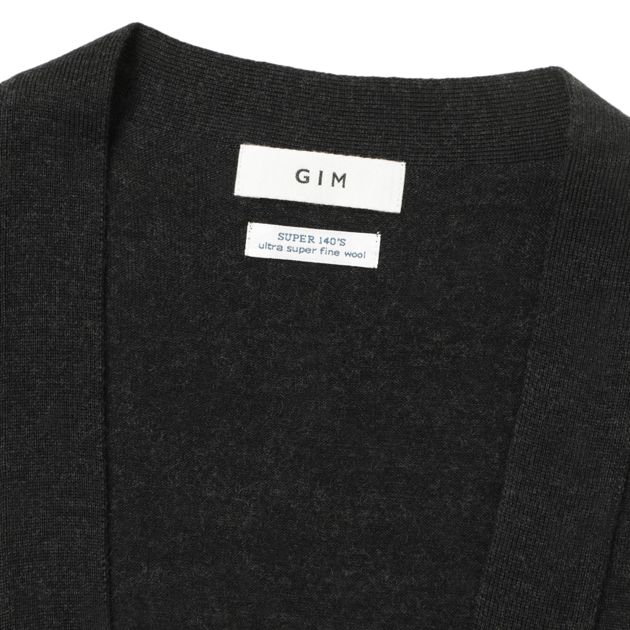 GIM ジム ニット カーディガン ハイゲージ Vネック ウール SUPER 140's ボタンレス 25504529 日本製 長袖 911/チャコールグレー