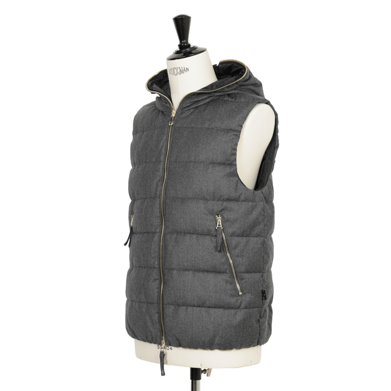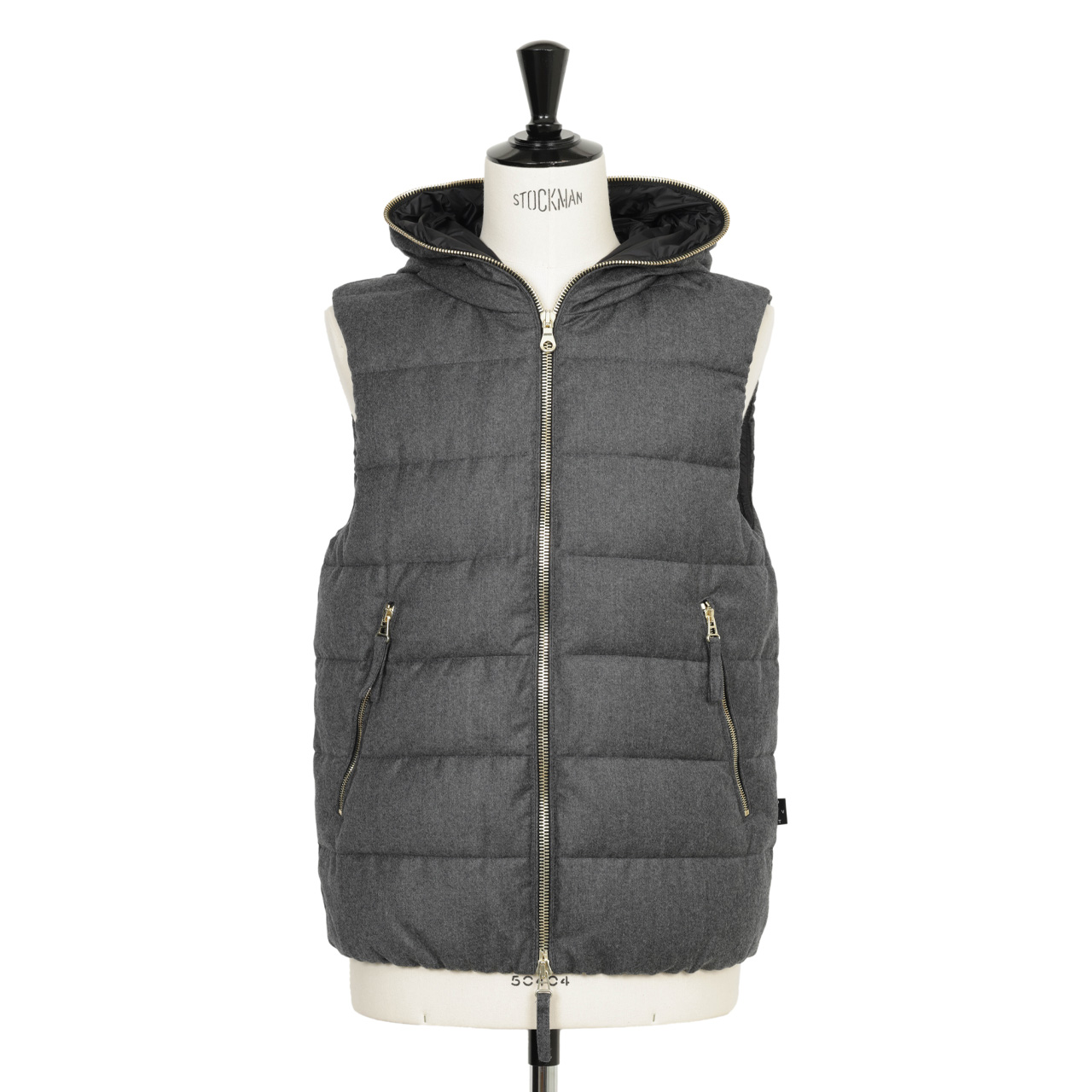 giabsarchivio × DUVETICA ジャブスアルキヴィオ デュベティカ ダウン ベスト メンズ ウール ストレッチ 撥水 ダブルジップ ゴールド PONZA A8413 ASPHALT/グレー