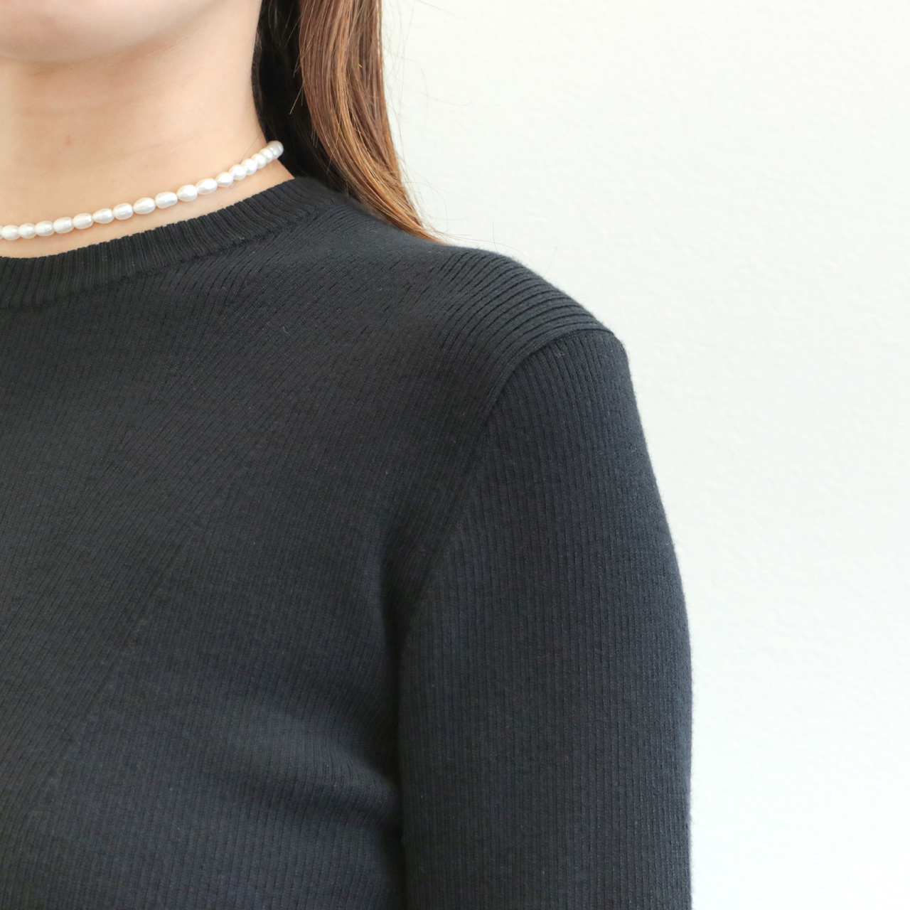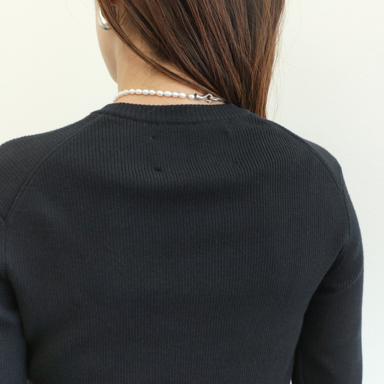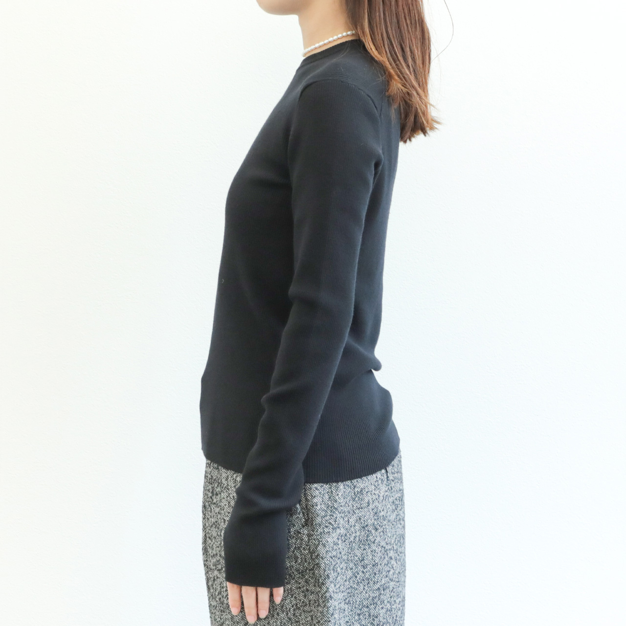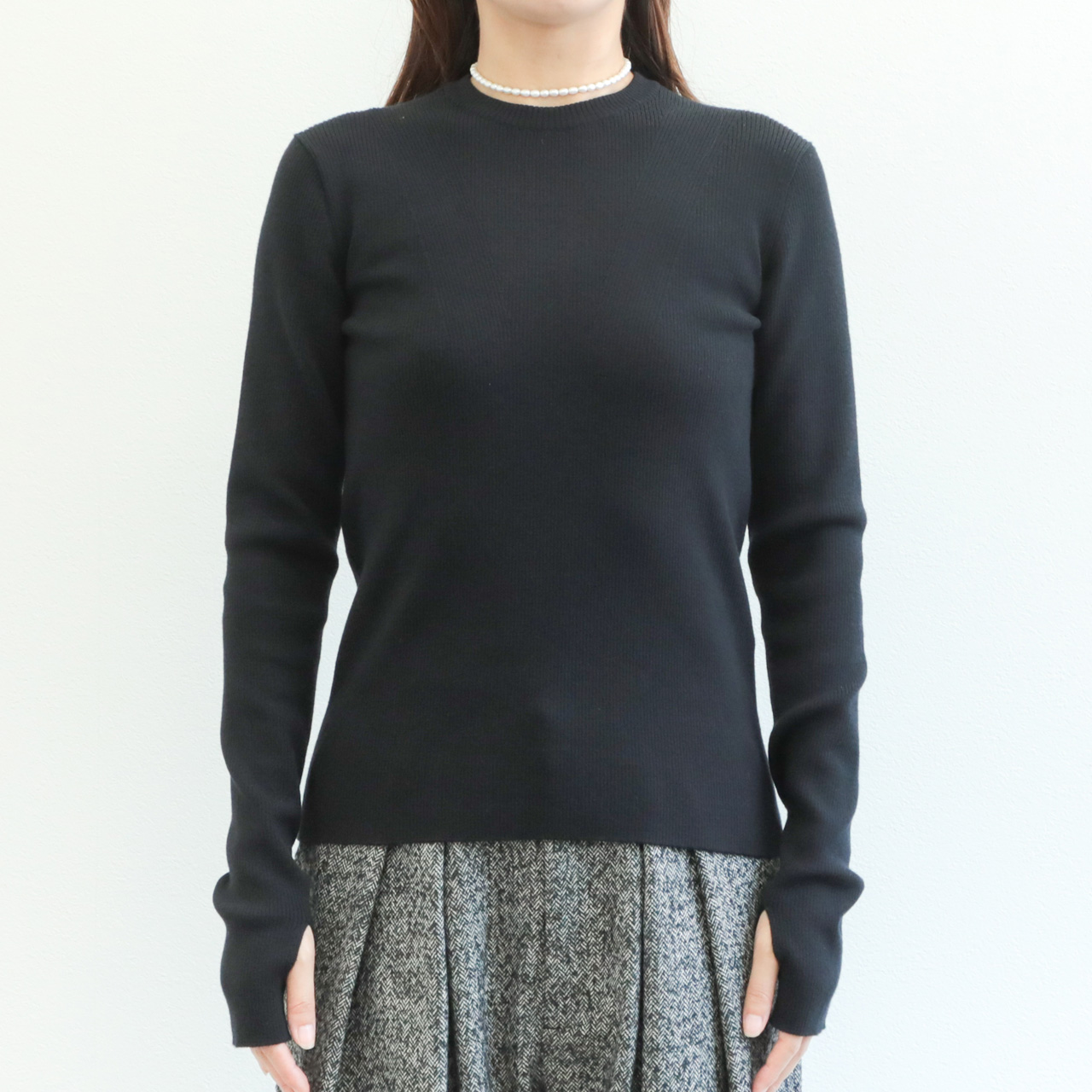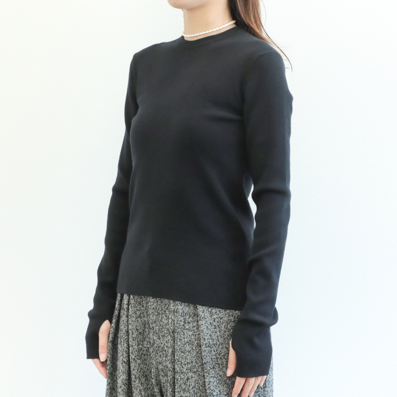 LOWER ローヴァー レディース ニット 長袖 ウール メリノ スーパーエクストラファイン Super 140's リブ ストレッチ 丸首 クルーネック 18G Ribbed Crewneck Pullover LW-43 BLACK/ブラック