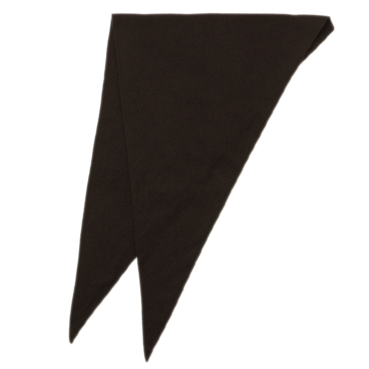 こちらはカシミヤ100%使用のストール。トライアングル型のユニークな形状で、スカーフ・ストールどちらの要素も泡得持った万能な巻物が欲しいという思いから生まれたモデル。
